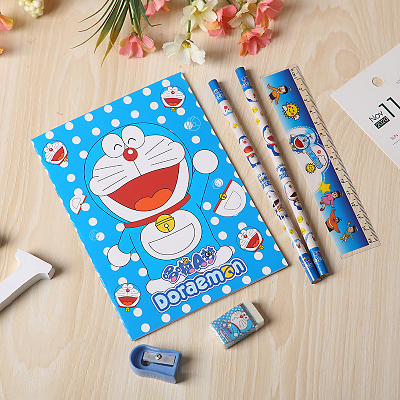 Product specifications: 1 handbag, 1 notebook, 2 wooden pencils, 1 pencil sharpener, 1 eraser, 1 ruler