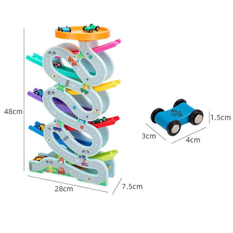 Children's gliding car educational toy, solid wood gliding track car for boys and girls, ball game racing educational toy