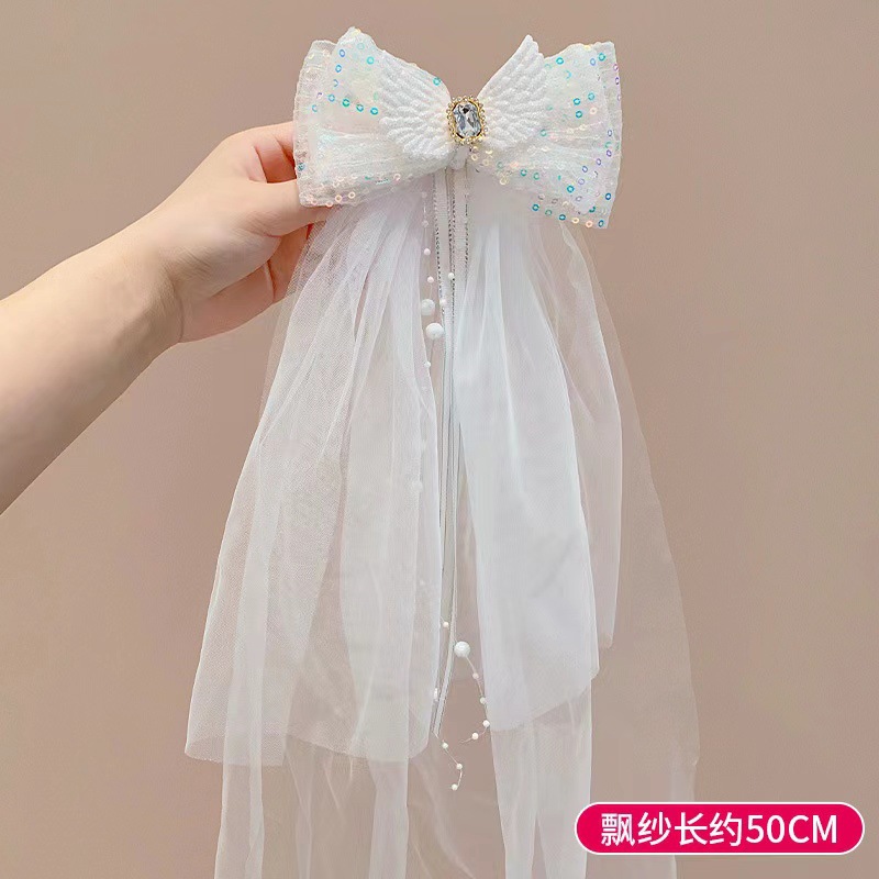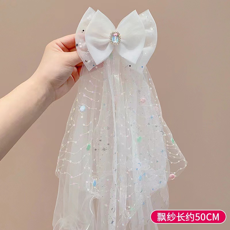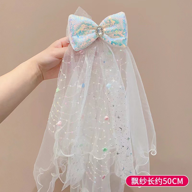 Children's hair clips, luminous bow headscarves, girls' sequined mesh hair clips, headwear, registered online celebrity hair accessories