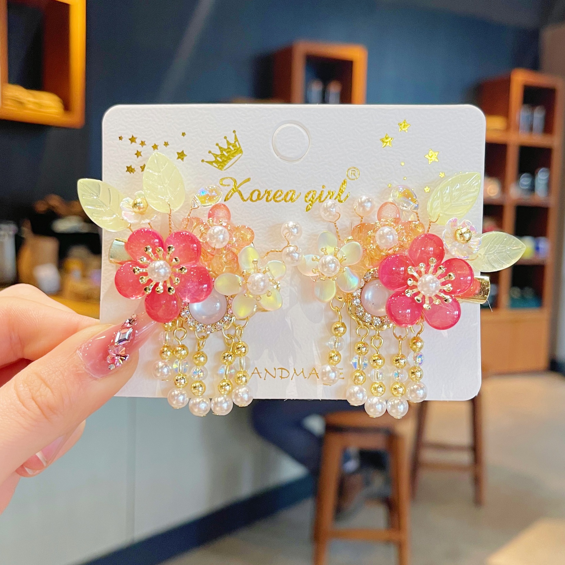 Children's hair clips, national trend series, ancient-style hair accessories, Hanfu headwear, children's tassels, handcrafted hair clips, step pearl, girls' butterfly hair clips
