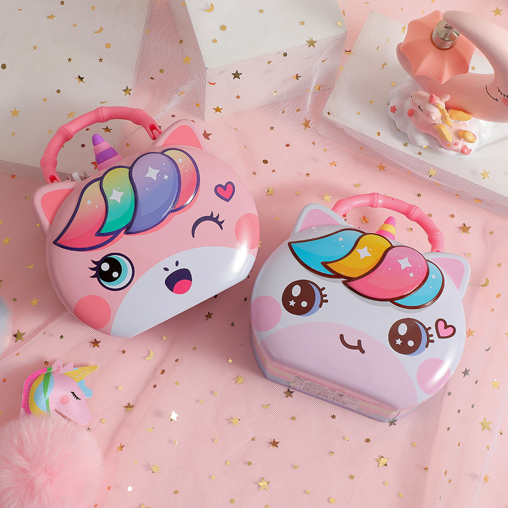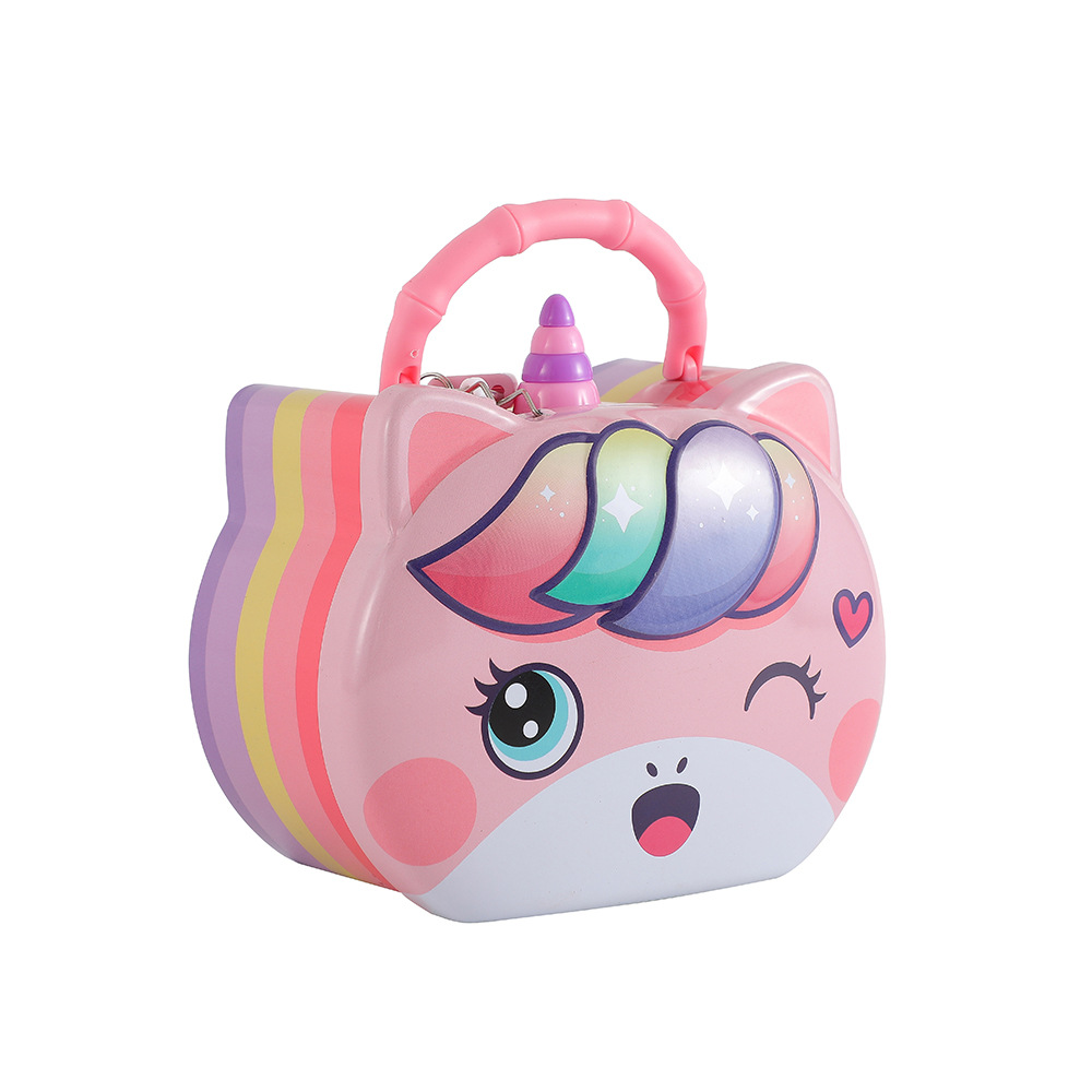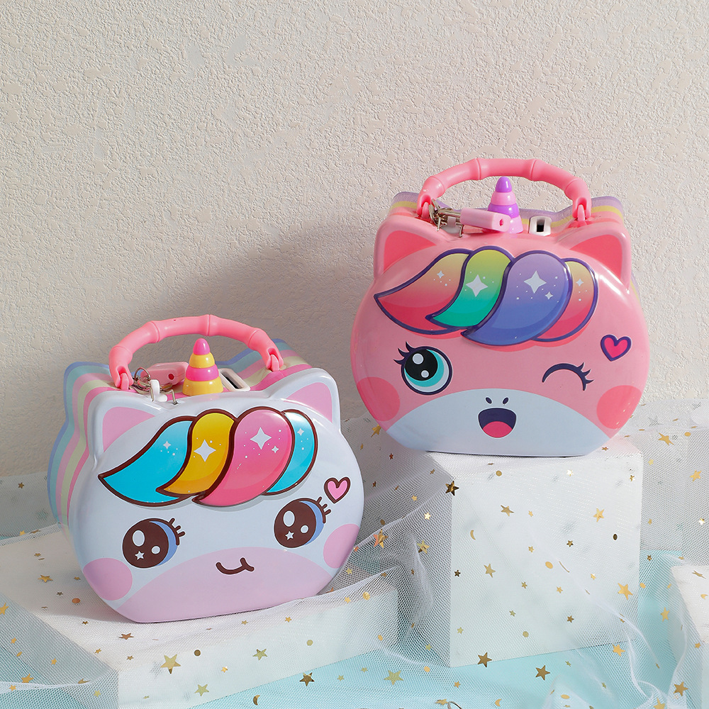 Children's iron unicorn savings box, cartoon hand-held locked piggy bank, small gift tin box for kindergarten activities