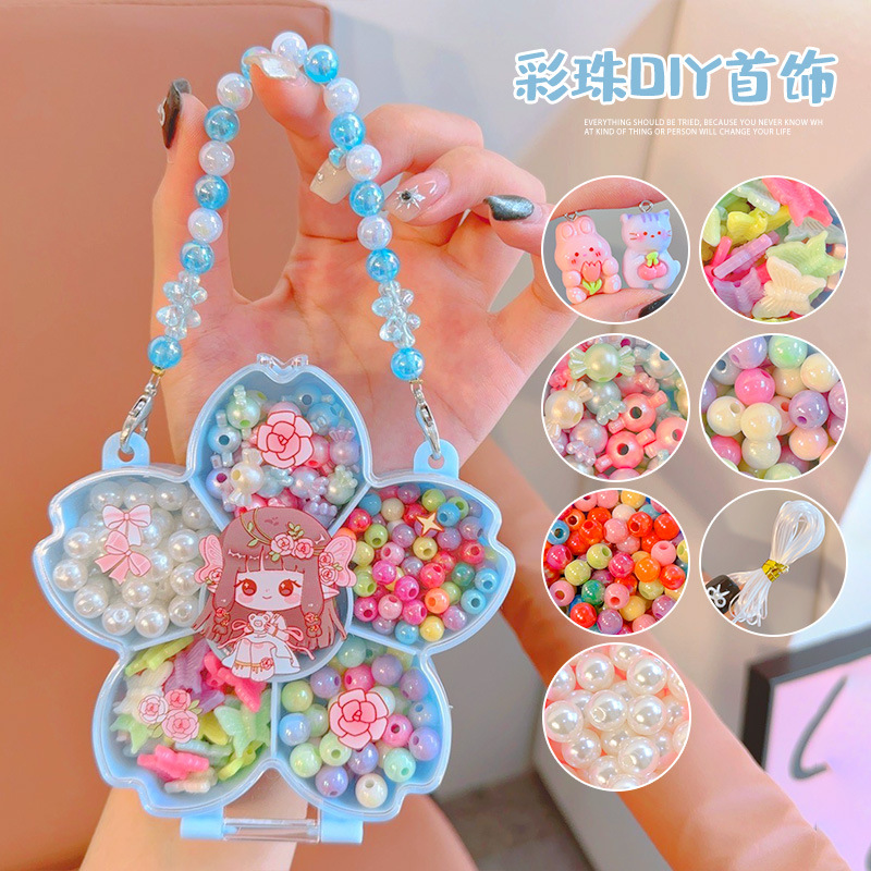 Children's jewelry gift box, cartoon girls, high-end beaded bracelet set, kindergarten prizes, baby jewelry set