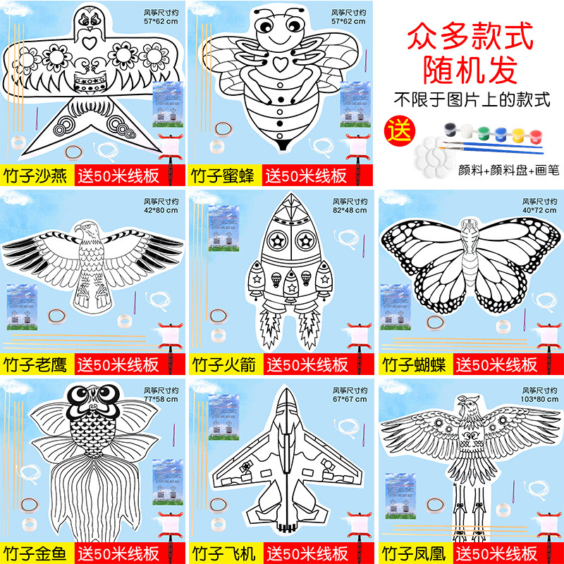 Children's kite diy, hand painting, blank coloring, line drawing, kindergarten teaching material package, doodling, string delivery