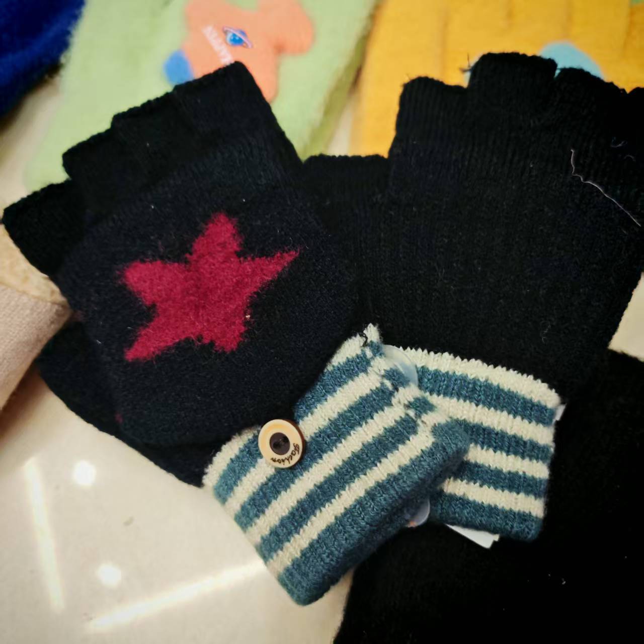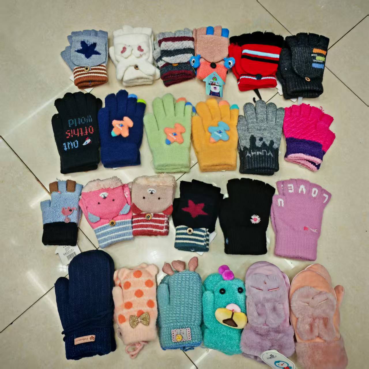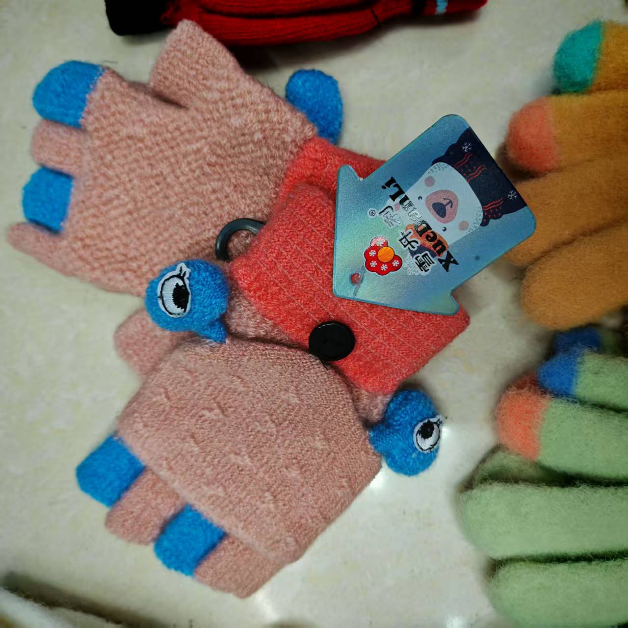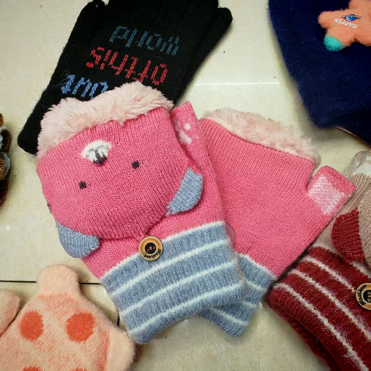 Children's knitted gloves, flip-top finger-exposing warm touch screen gloves, mixed colors and styles, street goods, wholesale at morning and night markets