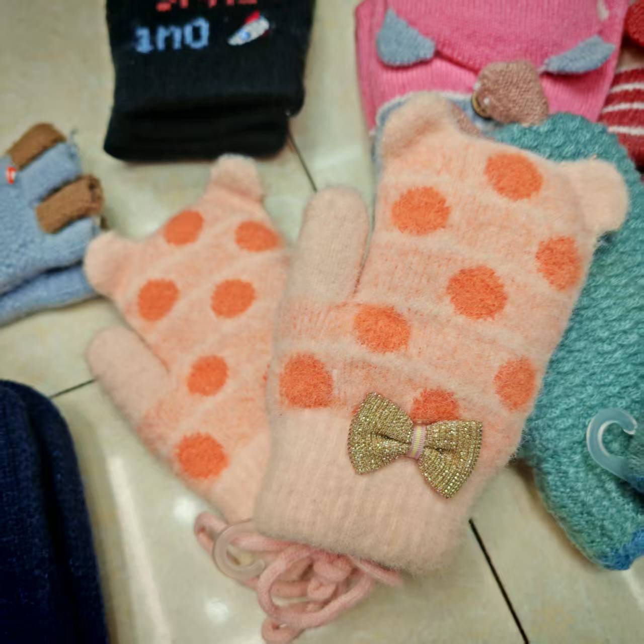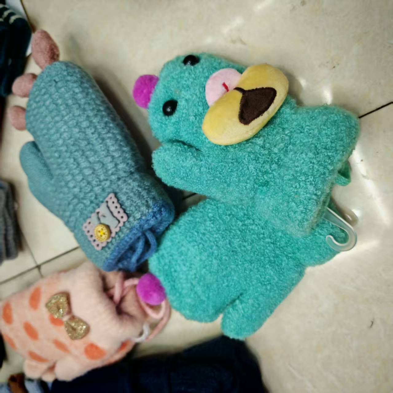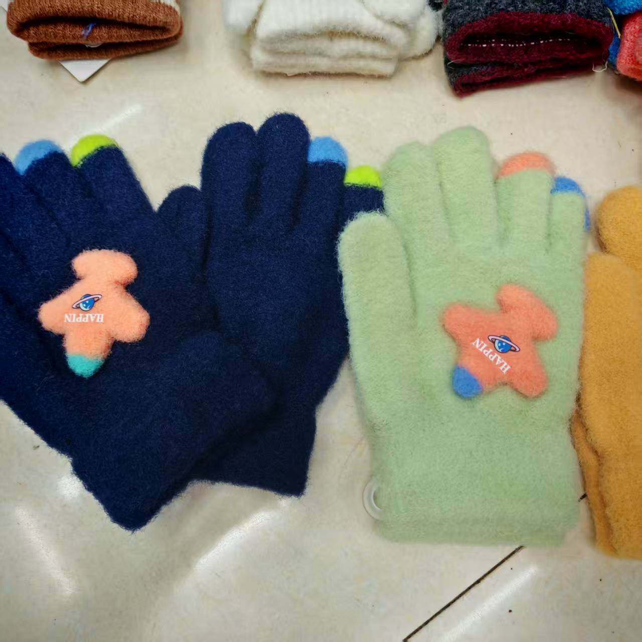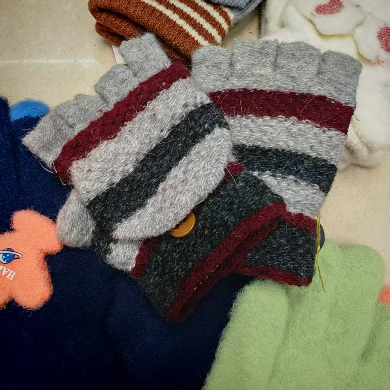 Children's knitted gloves, flip-top finger-exposing warm touch screen gloves, mixed colors and styles, street goods, wholesale at morning and night markets