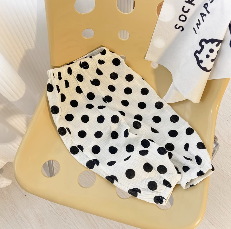 Children's Korean-style cotton yarn mosquito repellent pants 2024 Summer new style for boys, girls and babies double-layer gauze casual breathable trousers