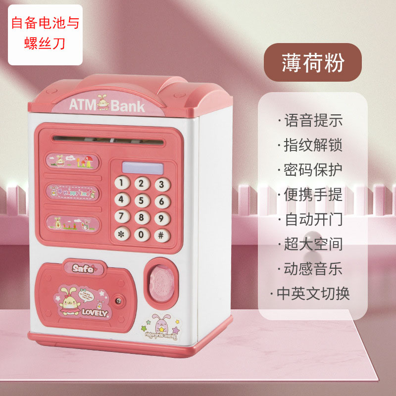 6909- Pink Card ATM [Fingerprint Password Sound Effect Automatic Door Opening Manual Money Roll]