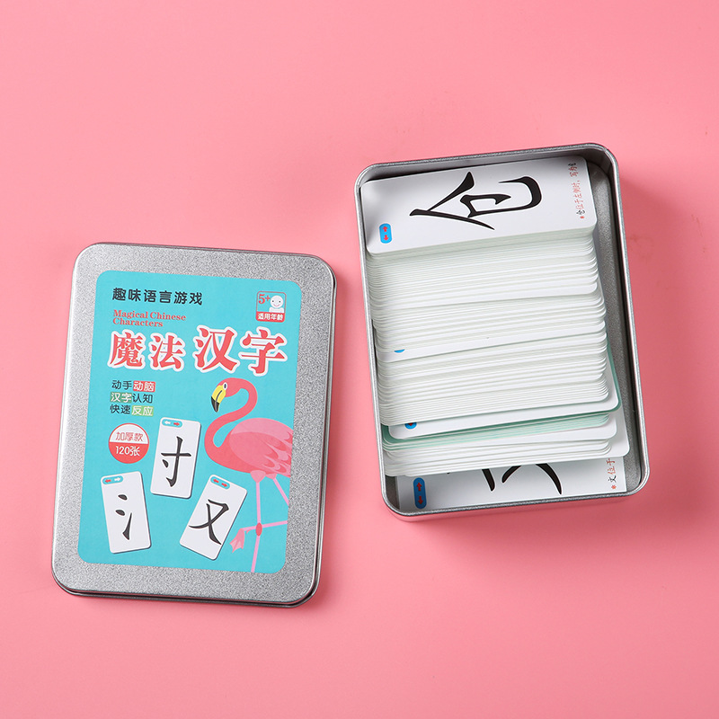 This magic Chinese character card contains 120 cards, 1 instruction manual and 1 iron box.