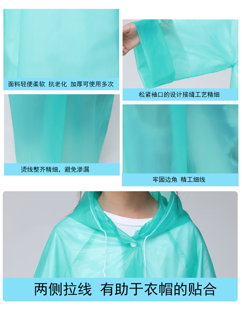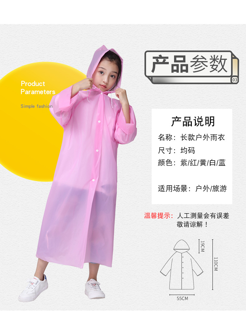 Customized non-disposable raincoat, thickened EVA matte adult one-piece raincoat, outdoor children's travel portable raincoat