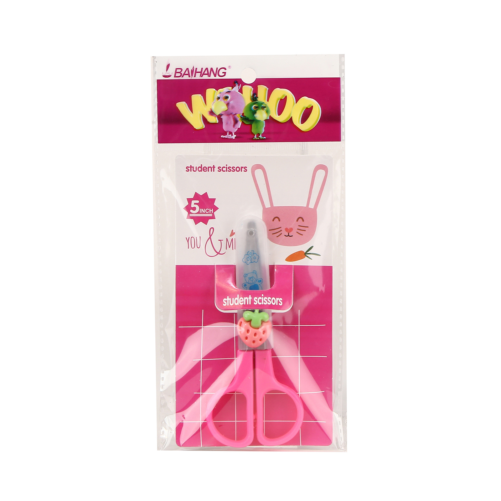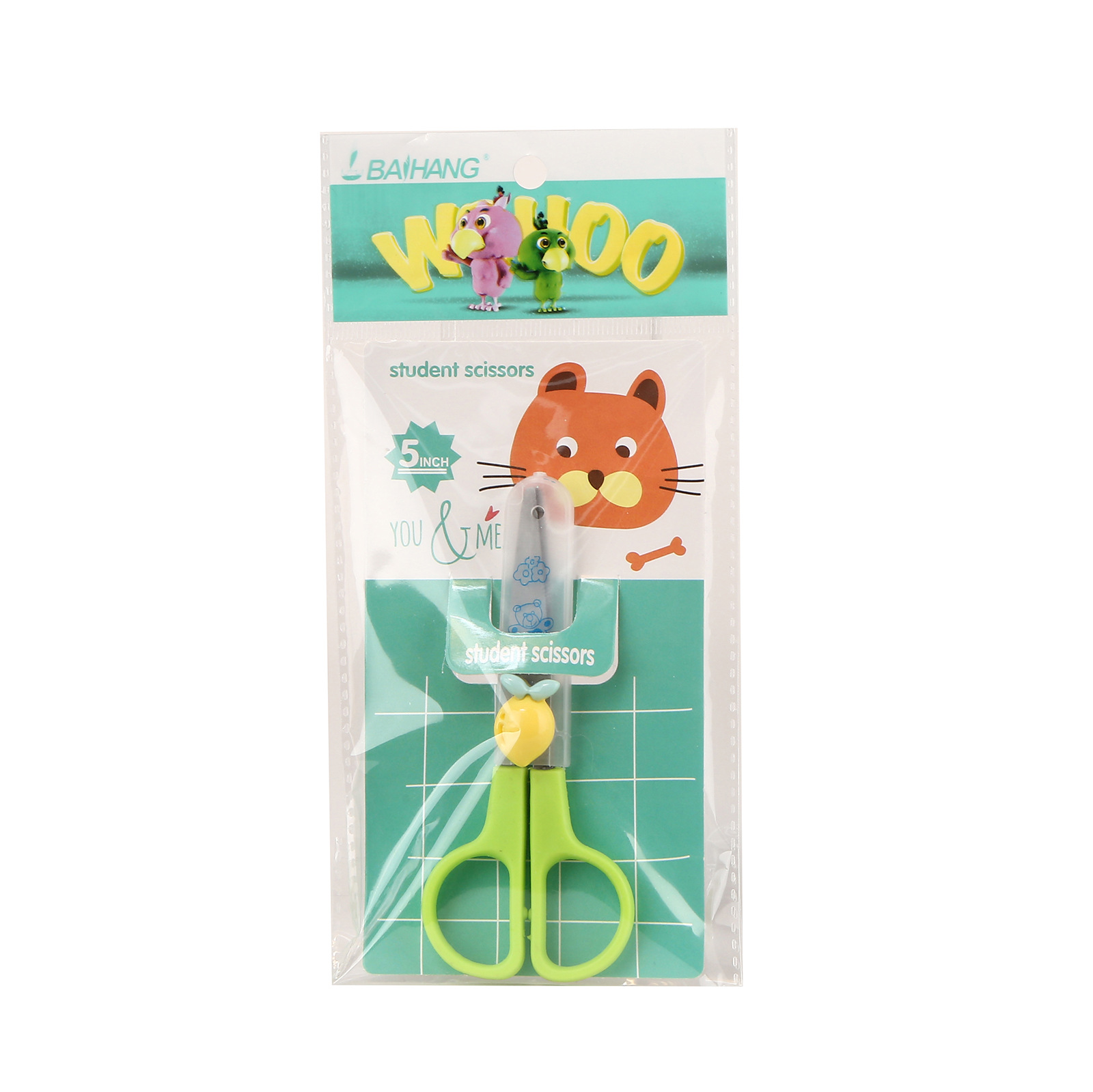 Children's safe fruit scissors, diy art paper-cutting knife, cute round head stainless steel with protective case scissors