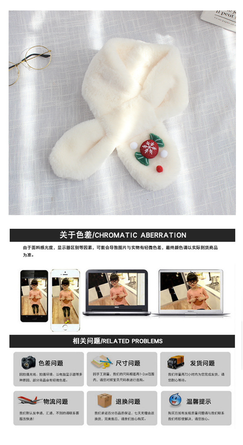 Children's scarf, Christmas scarf gift, Korean version student plush rabbit fur scarf, thickened and warm, cute for boys and girls