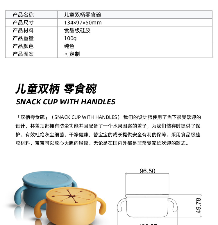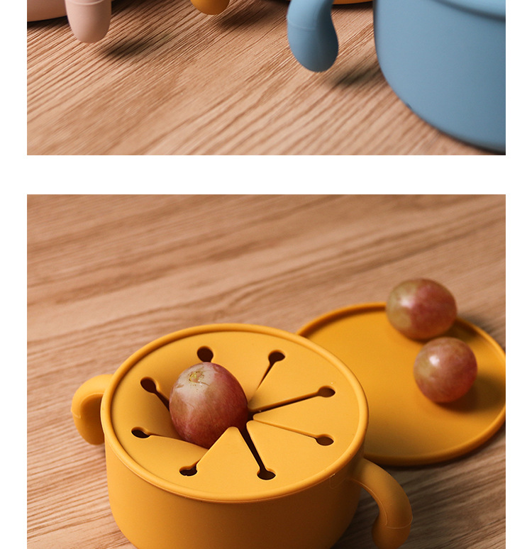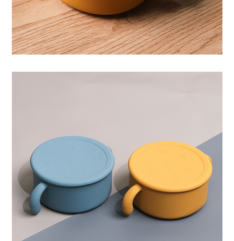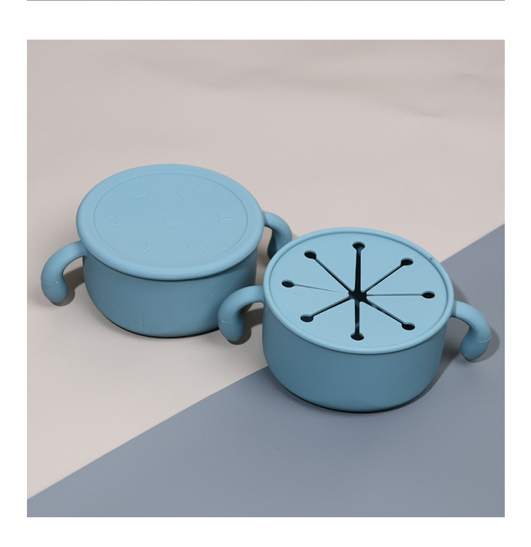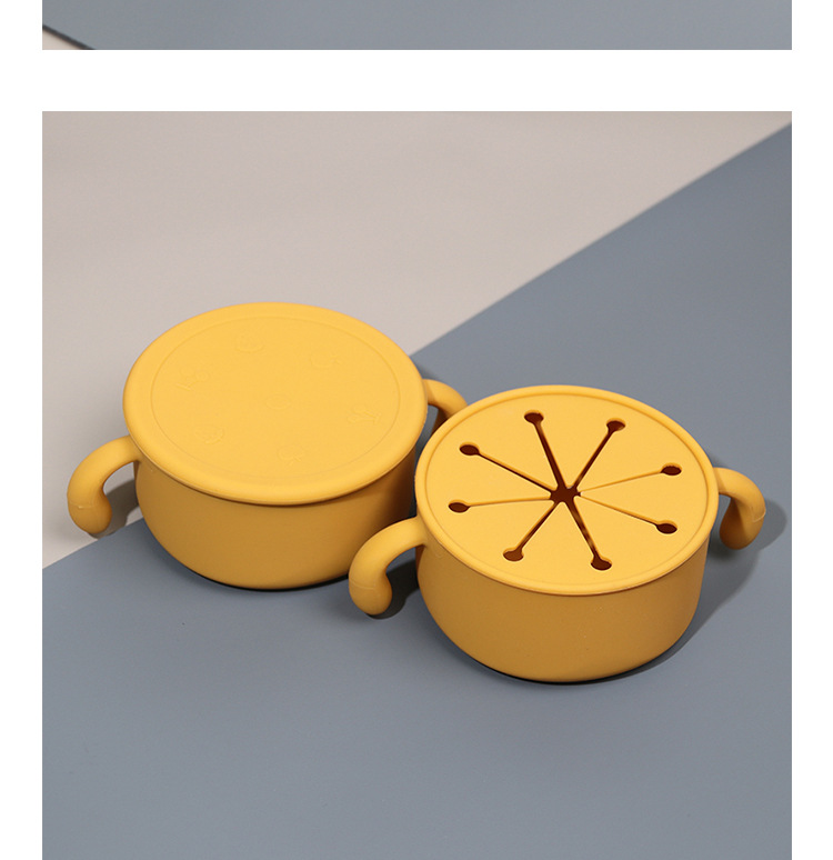 Children's silicone snack bowls, baby snack cups, and complementary food bowls. When going out, carry dust-proof bowls and feeding utensils to prevent leakage