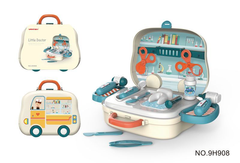 Children's simulation doctor toolbox, kitchen cooking tableware, makeup, supermarket set, house play suitcase, cross-border play