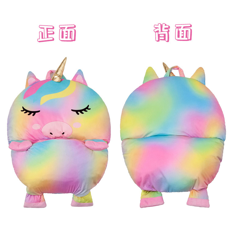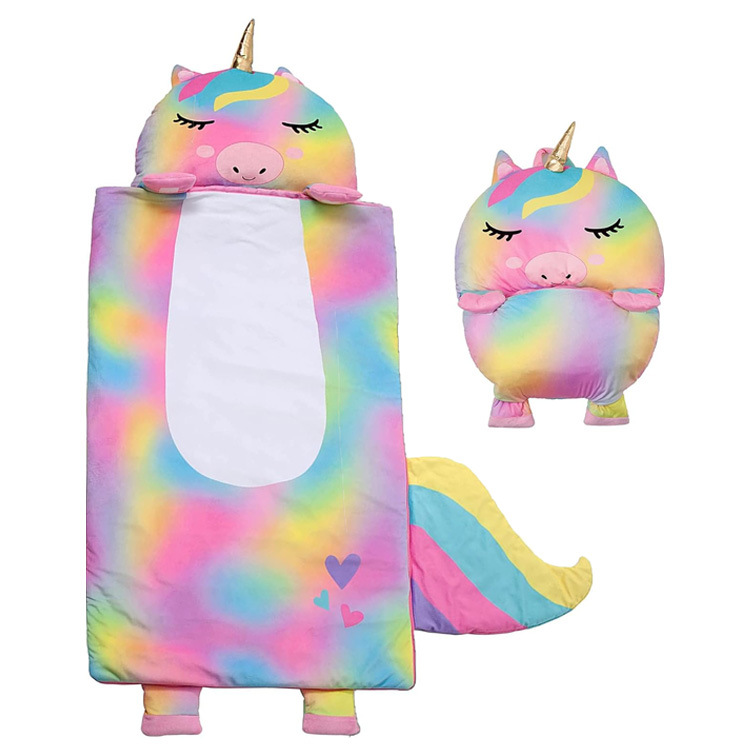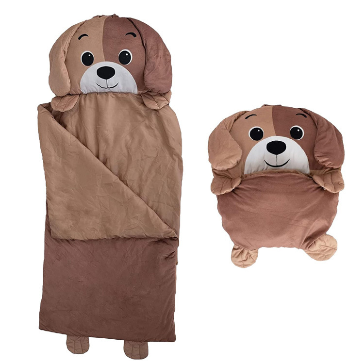Children's sleeping bag, new plush PP cotton rabbit fur cartoon printed warm and anti-kick quilt, suitable for children both indoors and outdoors