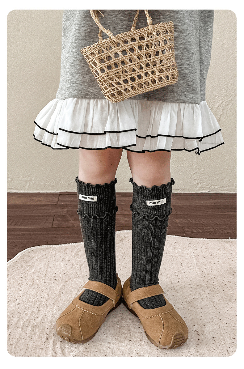 Children's Socks 2025 Autumn/Winter New mid-calf socks for girls, Korean-style double black fungus edge cloth label socks, baby pile socks