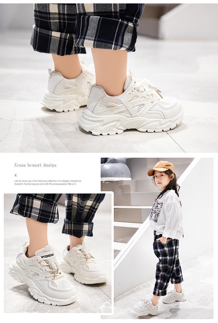 Children's spring and summer soft-soled white mesh shoes, new breathable mesh shoes for students, versatile dad shoes for boys and girls, Korean version