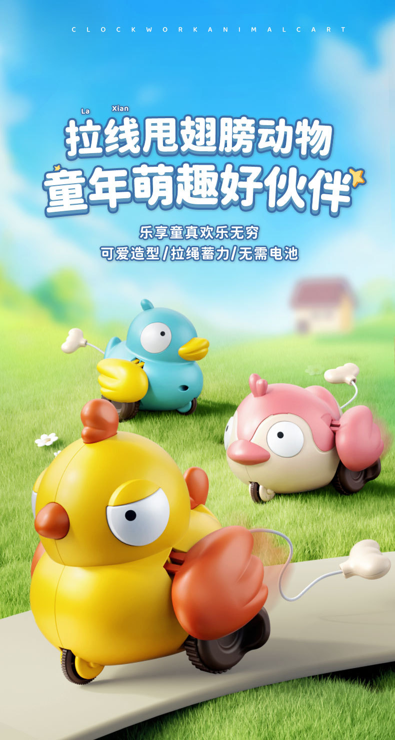Children's string-pulling toy duckling, cute and fun, string-pulling rope, moving forward, toy car, crawling and head-lifting training, educational toy