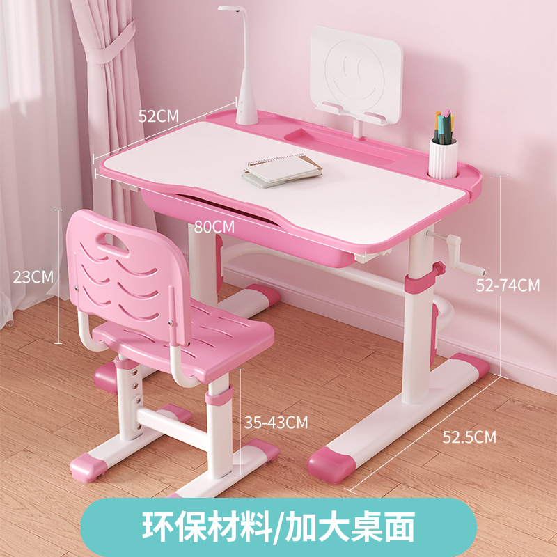 Diligent Study Edition (Pink) : Hand-cranked height-adjustable + Painting Desk + Eye-protecting desk lamp + Large desktop [with a reader included]