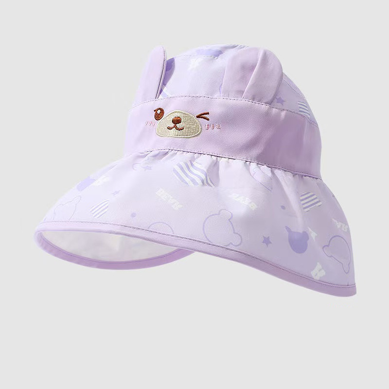 A purple cartoon rabbit-eared sun hat