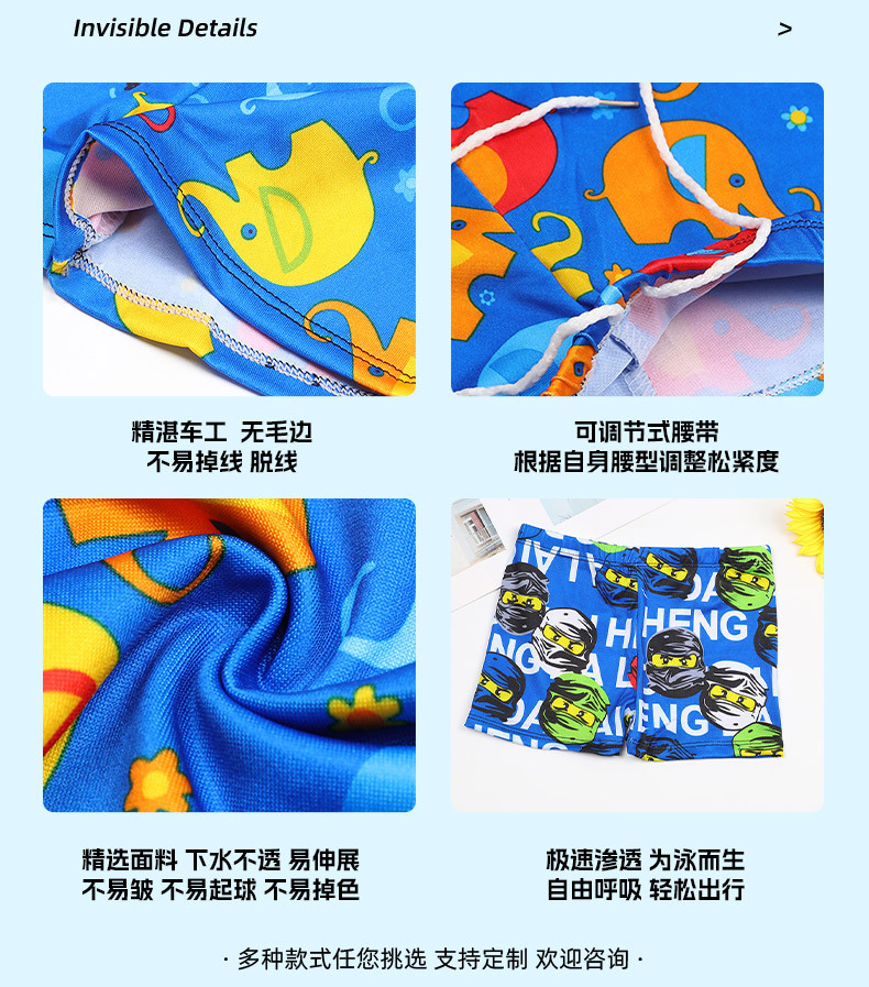Children's swimming trunks, boys' swimming suits, cartoon flat corners, quick-drying baby swimsuits, big kids, boys, Korean hot springs