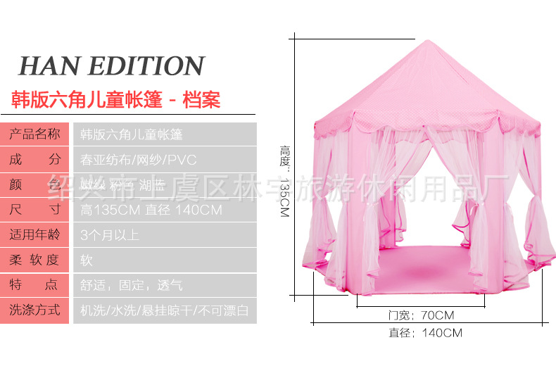 Children's tents in stock, hexagonal princess tents, tulle play houses, children's toys
