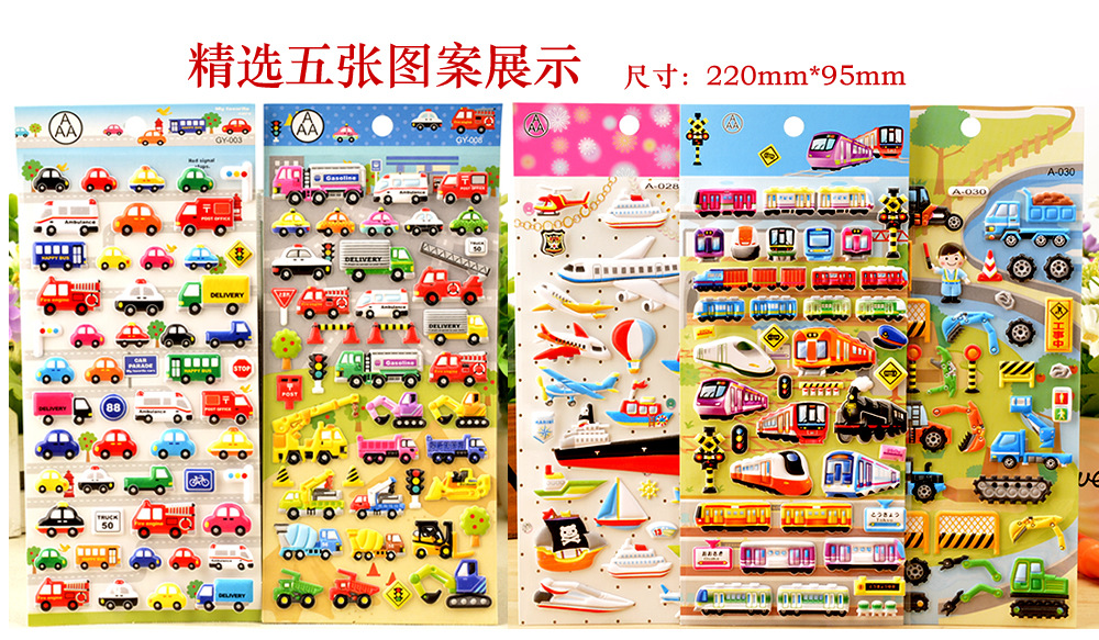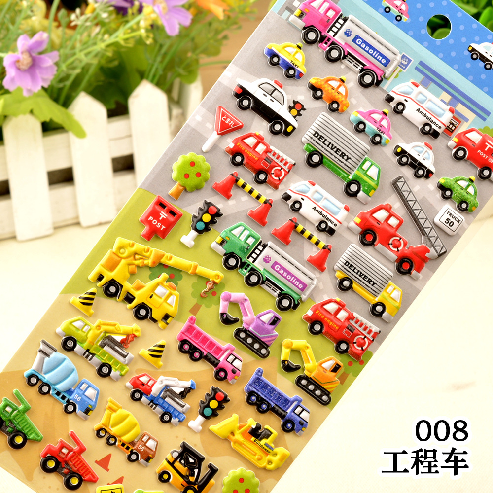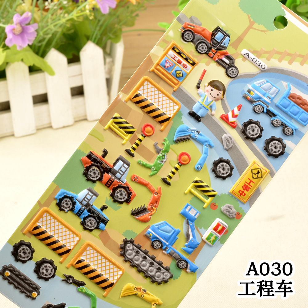 Children's toys, transportation vehicles, engineering vehicles, cars, 3D bubble stickers, kindergarten boys, reward stickers