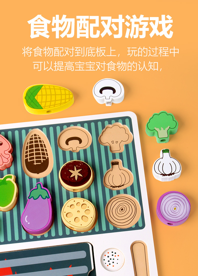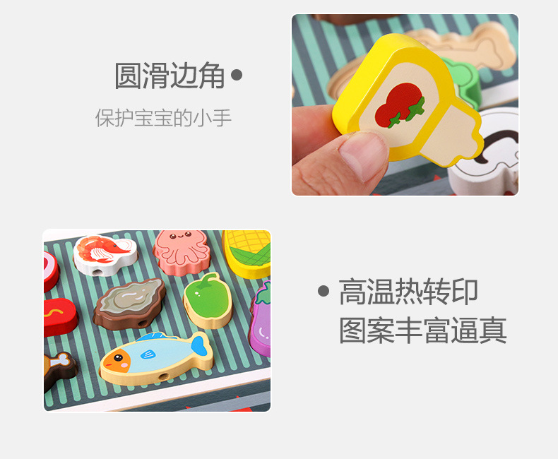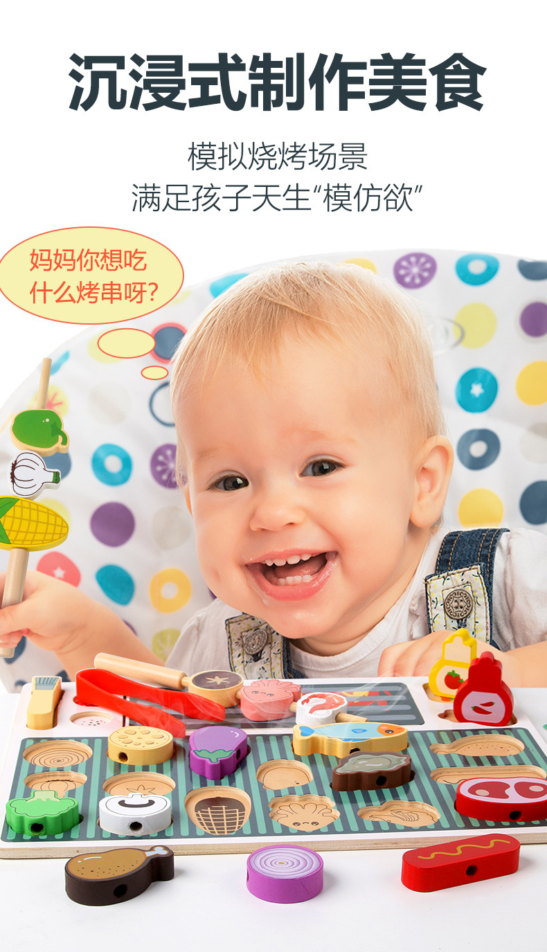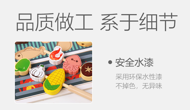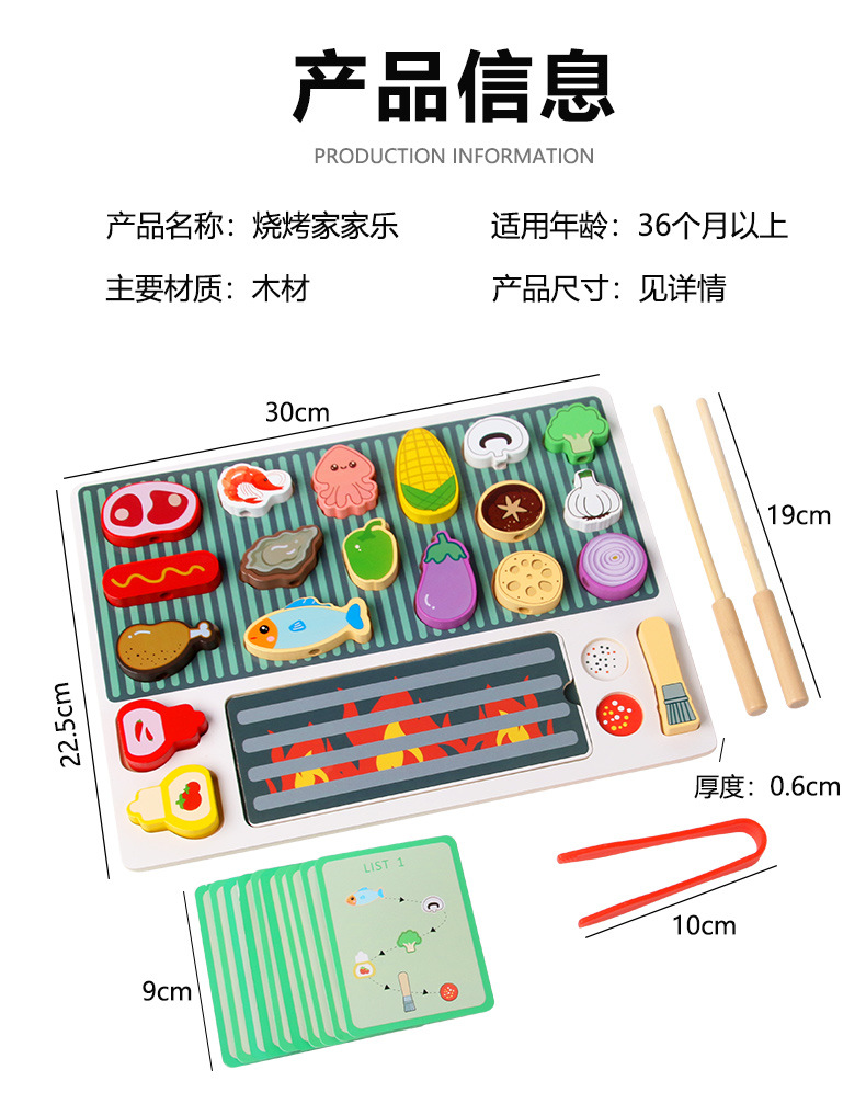 Children's wooden simulation barbecue grill set, boys' and girls' kitchen skewer building blocks, house play kitchen toys