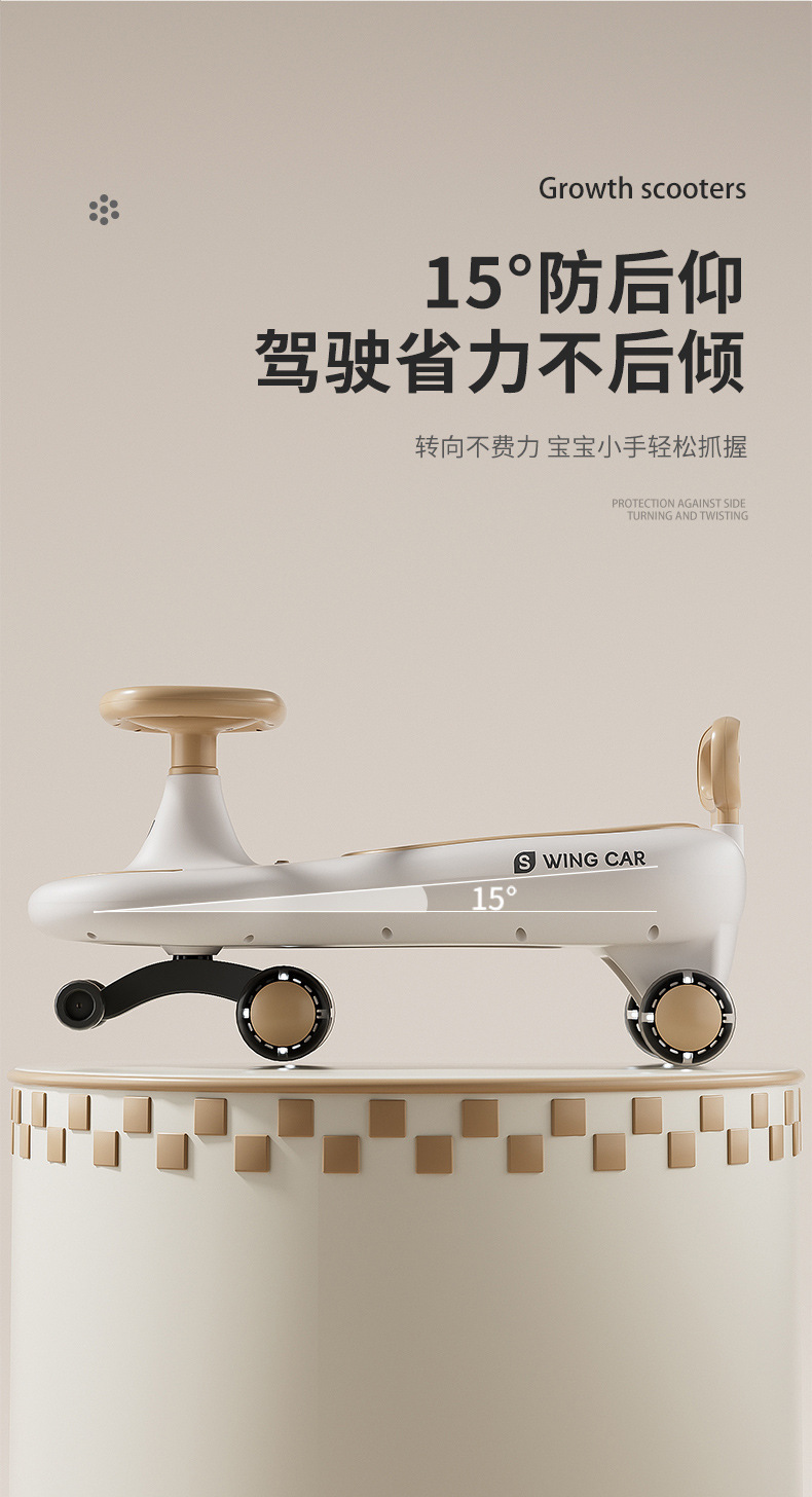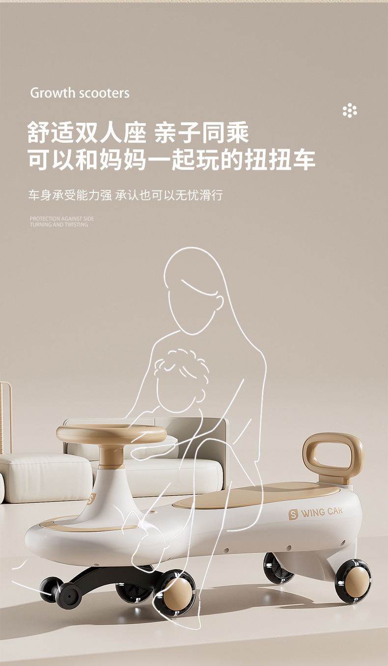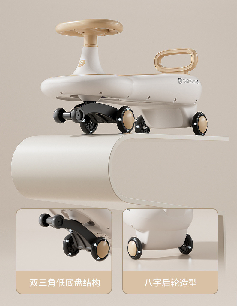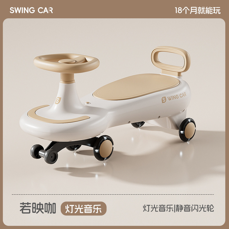 Children's yo-yook, anti-rollover, baby swing car, sliding car, silent wheel, light and music, baby twist car