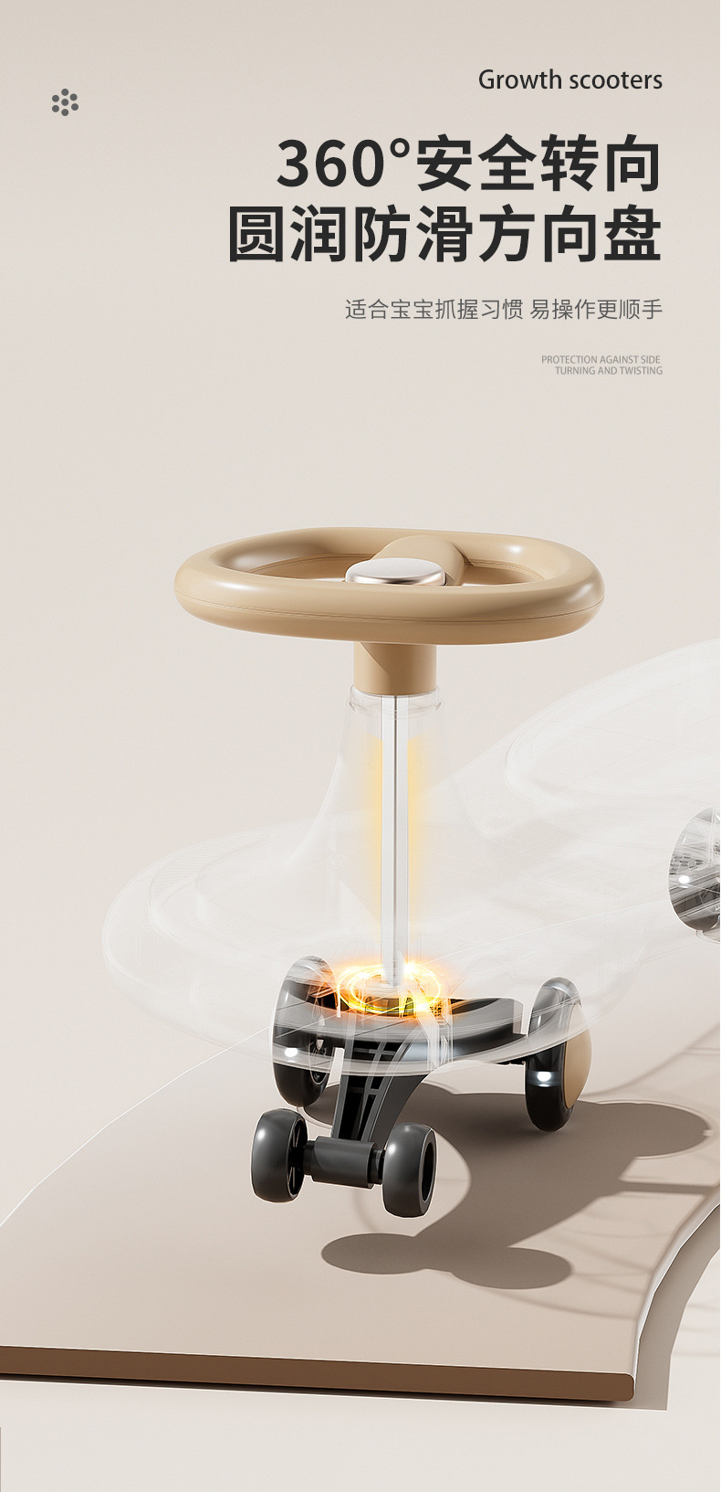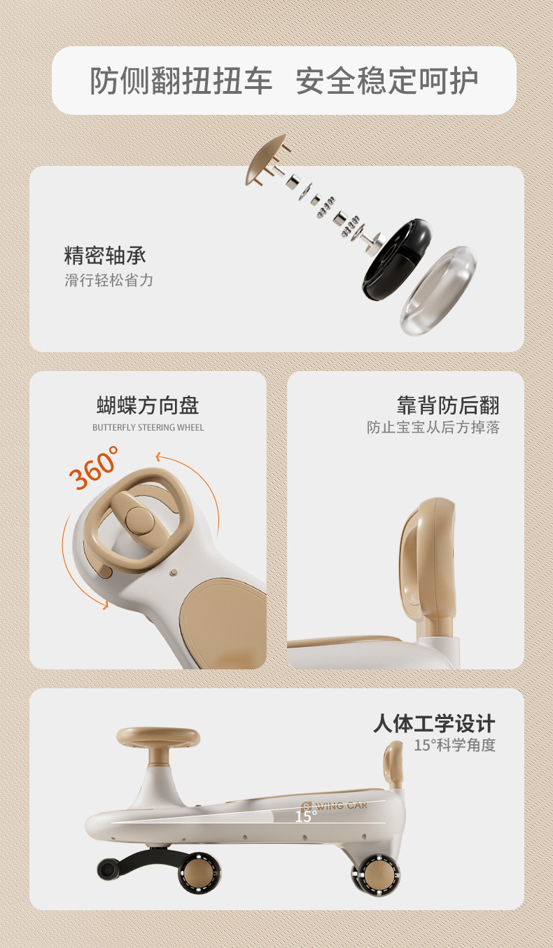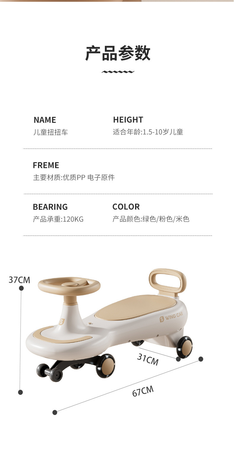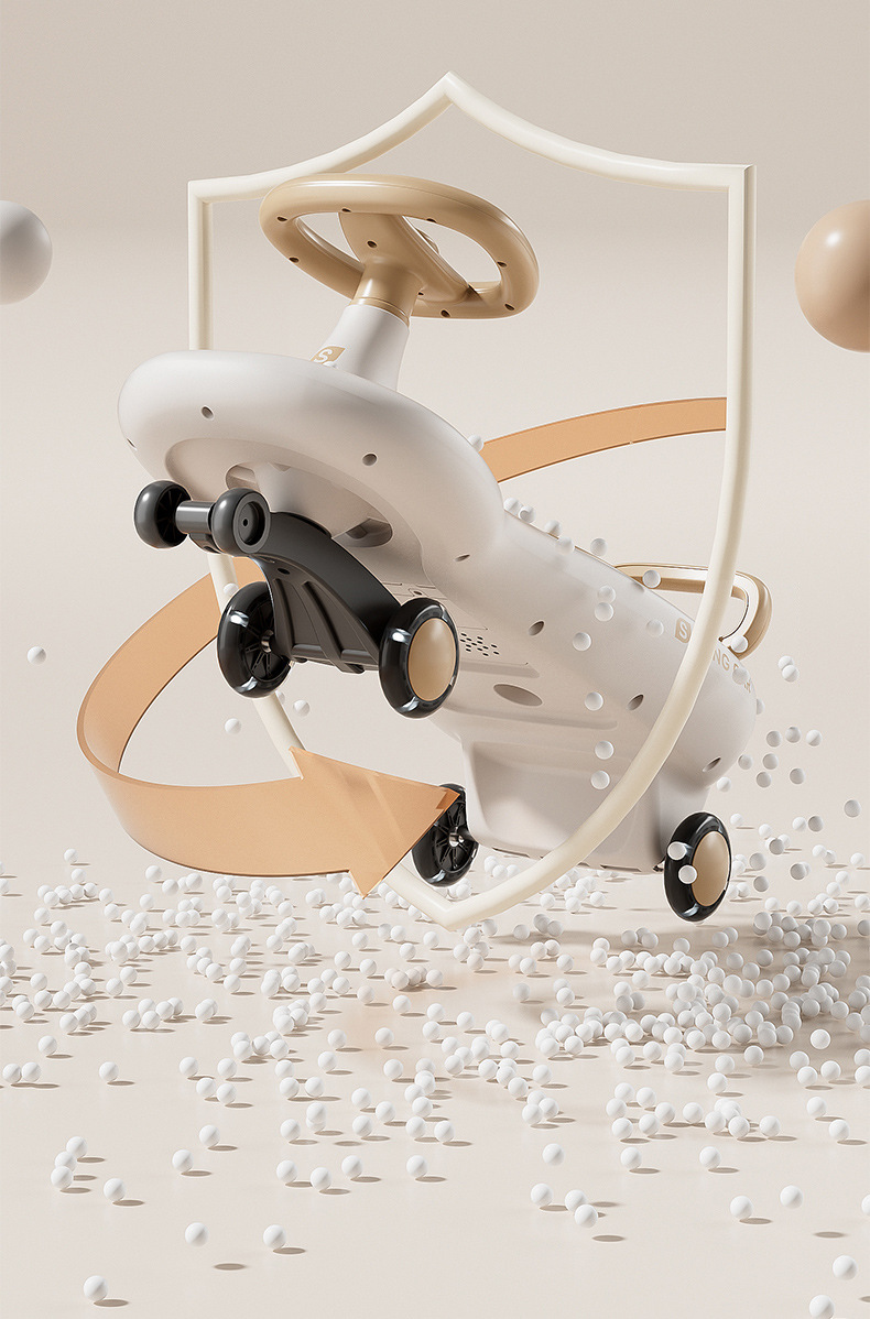 Children's yo-yook, anti-rollover, baby swing car, sliding car, silent wheel, light and music, baby twist car