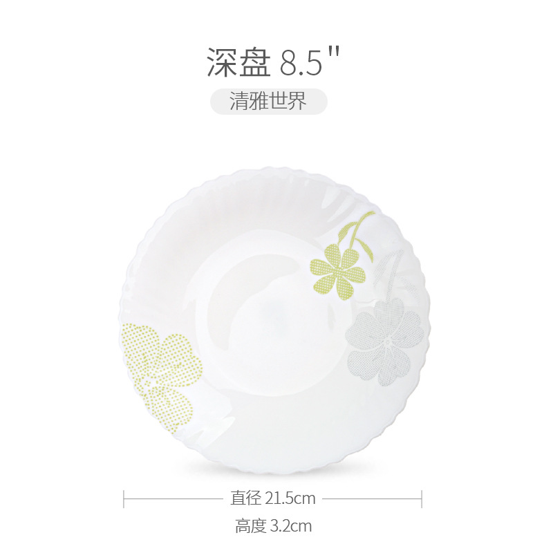 Chinbull centrifugal process lace deep plate, white jade glass heat-resistant dinner plate and vegetable plate, elegant world
