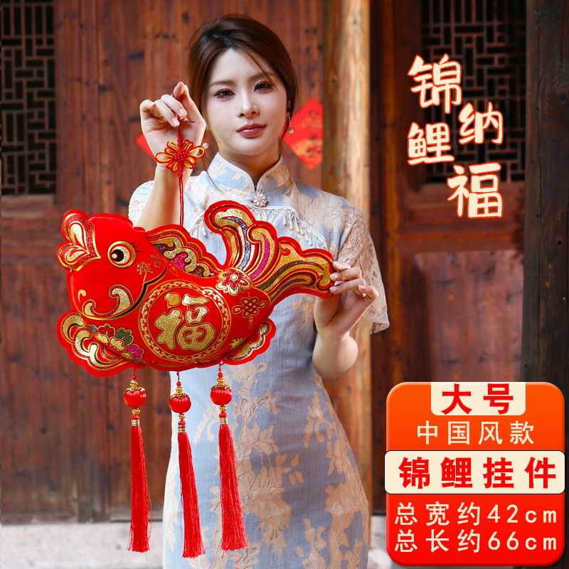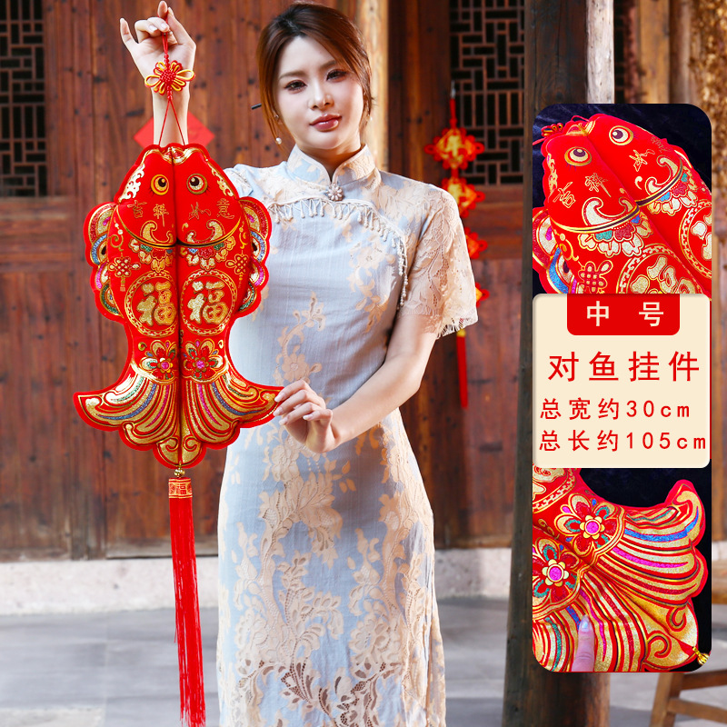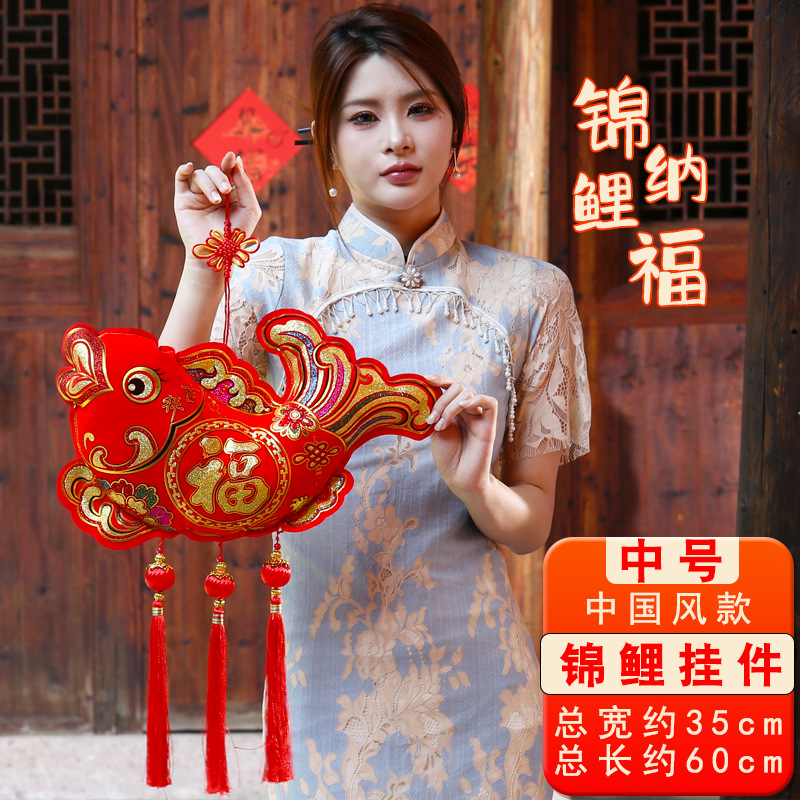Chinese knot fish pendant, "Fu" character New Year decoration, koi fish, Chinese-style decoration, double fish living room, new home interior hanging decoration