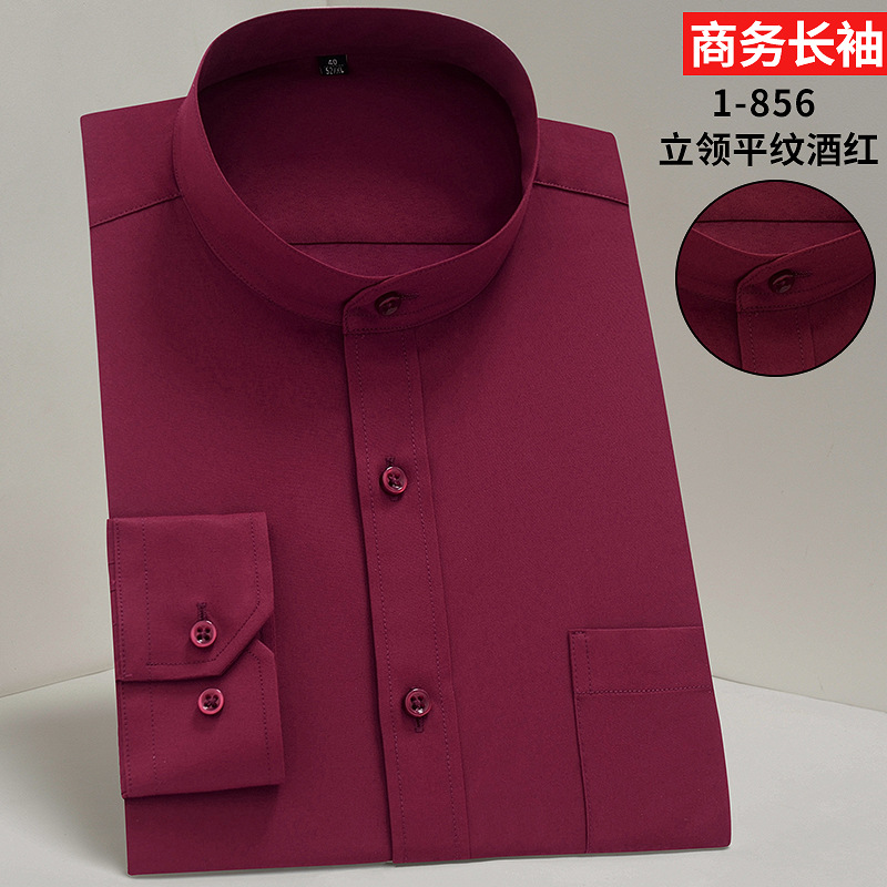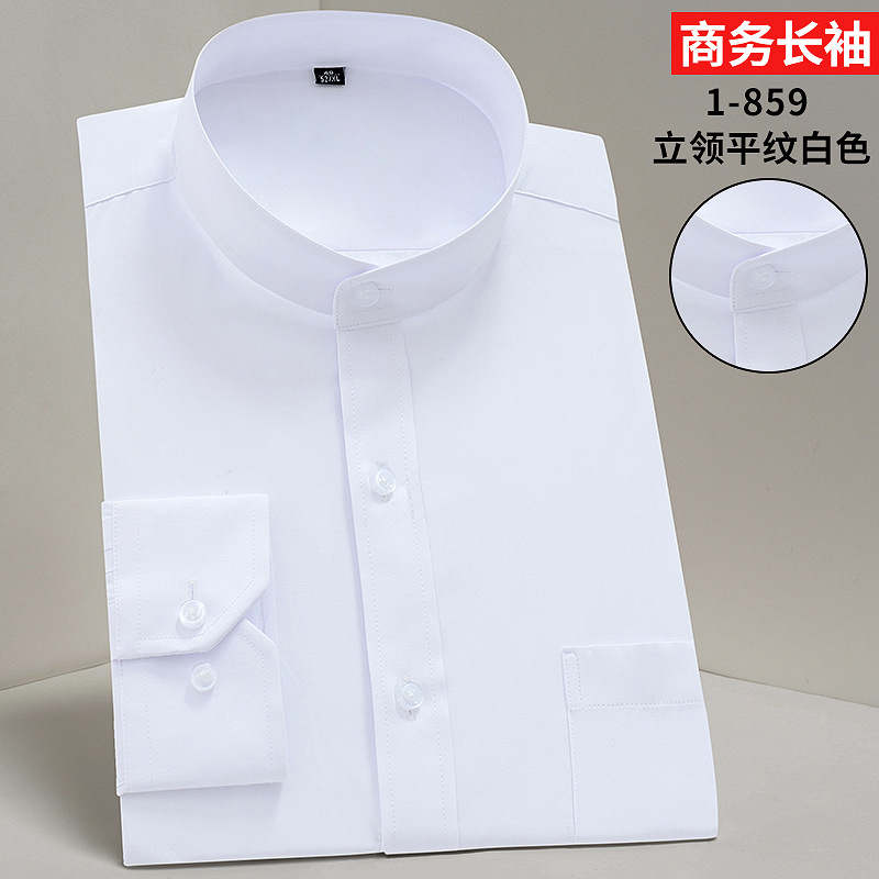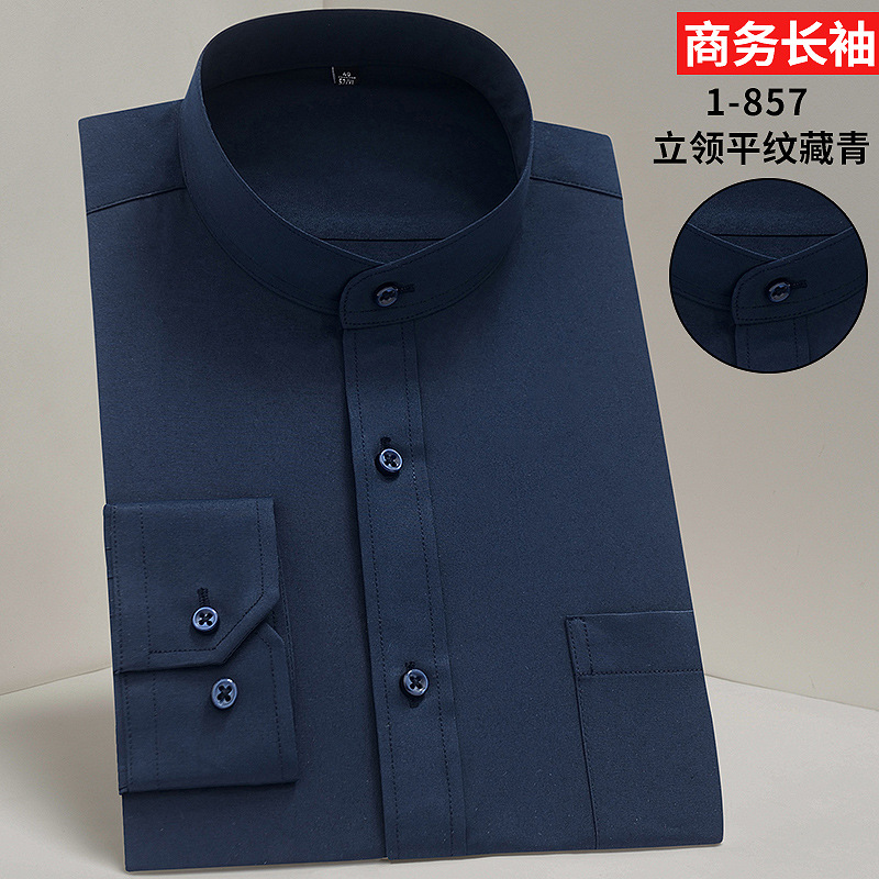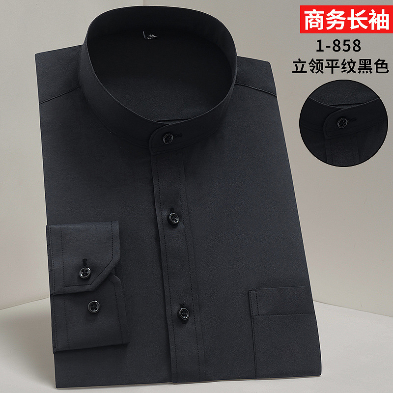 Chinese stand-up collar shirt, men's long-sleeved business formal wear, no-iron men's shirt, thin Zhongshan style, high-end men's wear