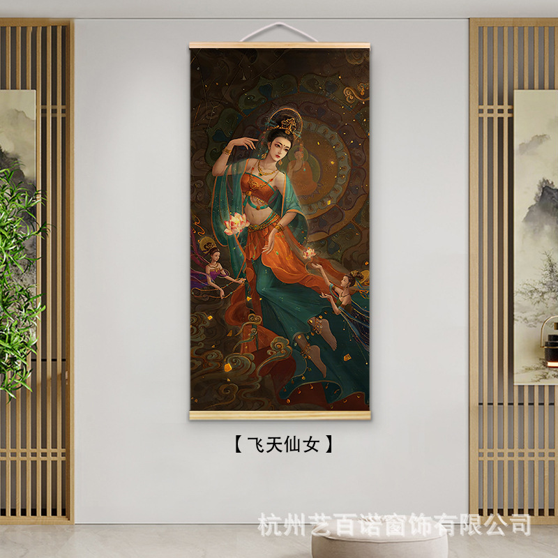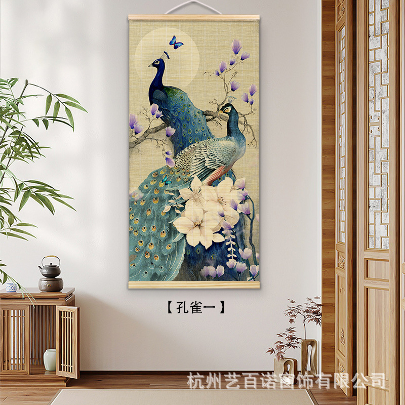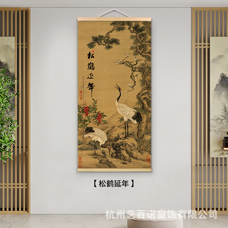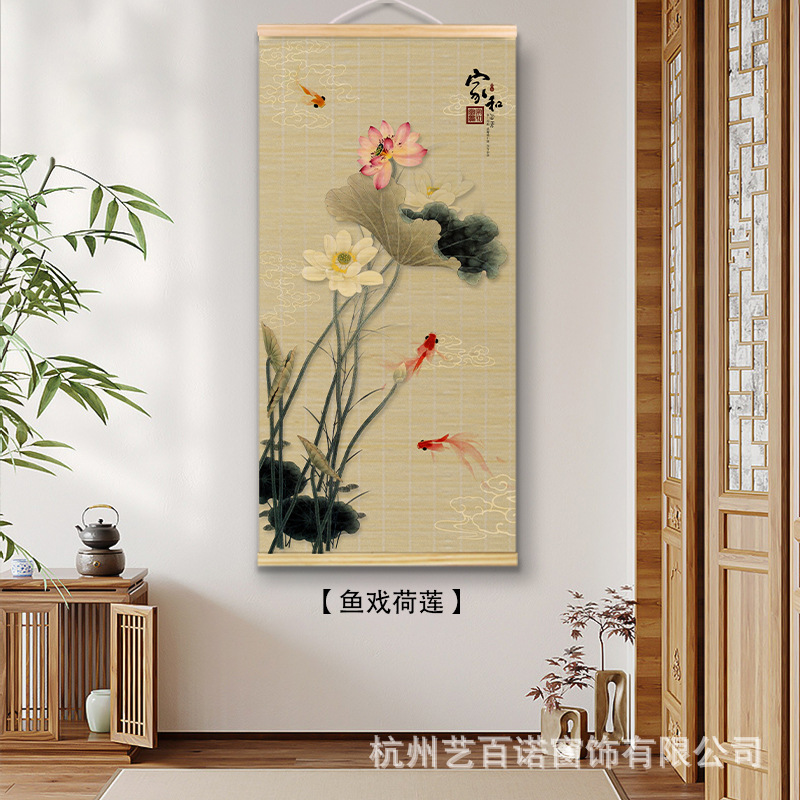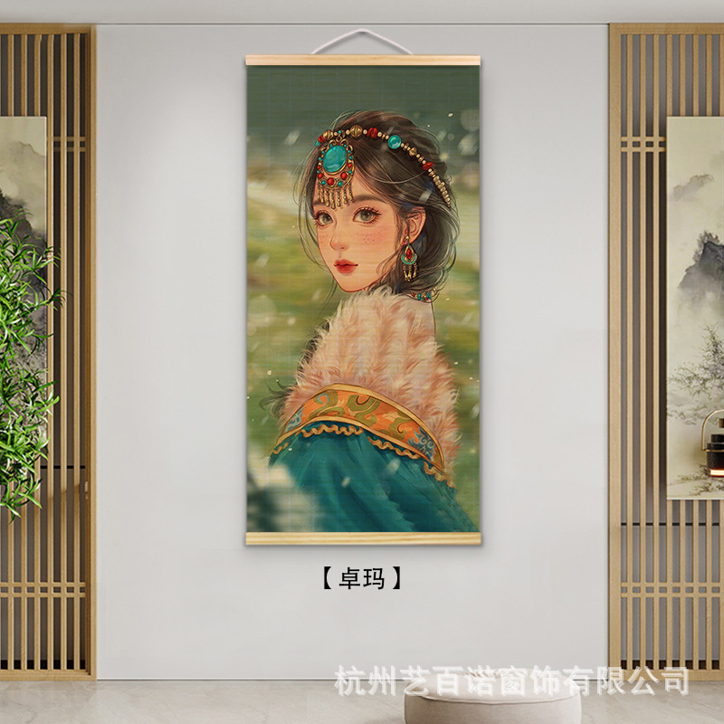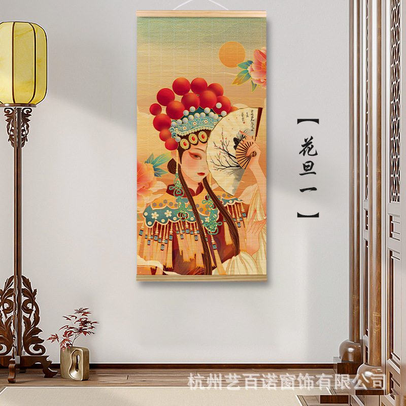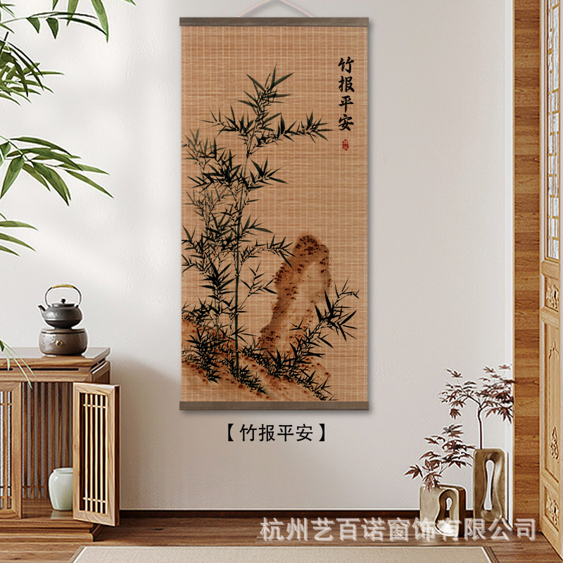 Chinese-style bamboo curtain hanging paintings, decorative paintings, nail-free hook murals, and background wall hanging curtains for the live-streaming room of the original manufacturer of Chinese national style