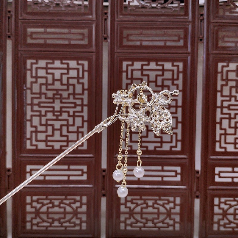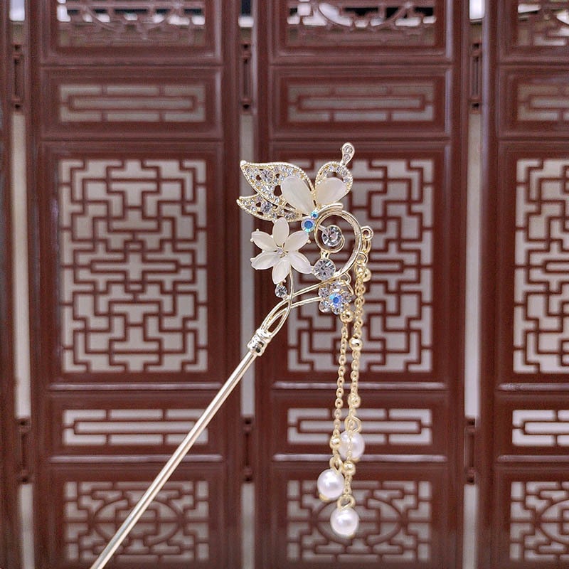 Chinese style, Chinese trend, ancient style, butterfly love flower, cat's eye hairpin, high-end new Chinese style hairpin, tassel, step shaking, Hanfu, updo, hair accessory, hair hairpin for women