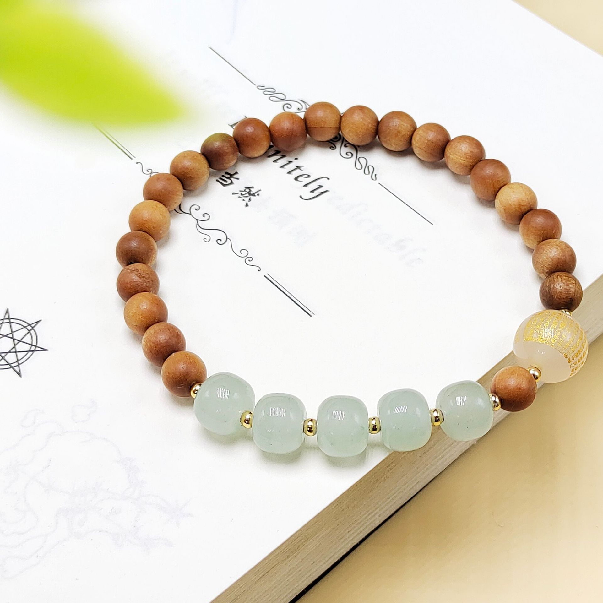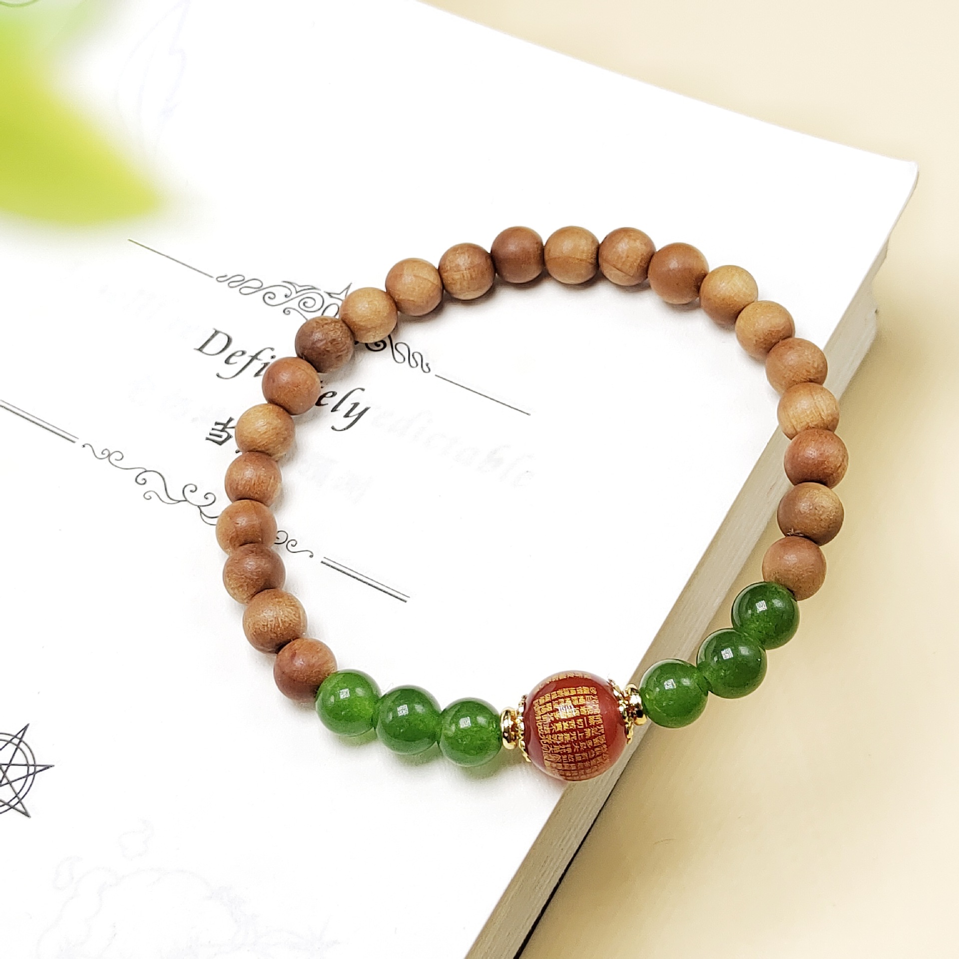 Chinese-style double-ring Barbie sandalwood smoke purple agate bracelet with Heart Sutra stacked text playing with Buddhist prayer beads, holding a girls' thin bracelet