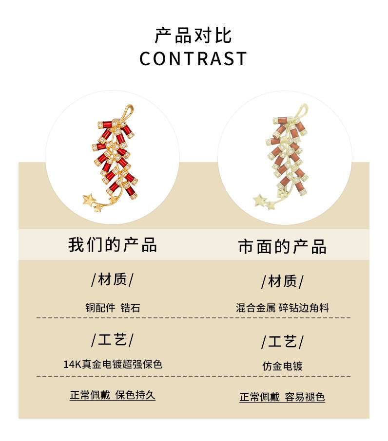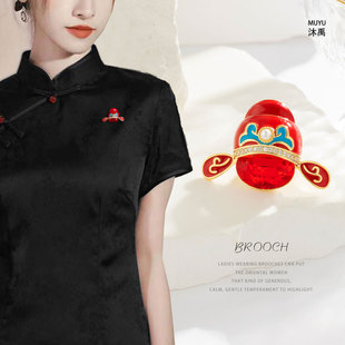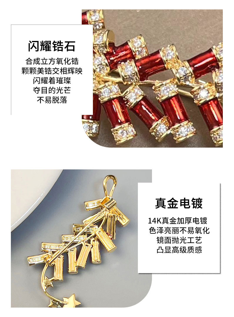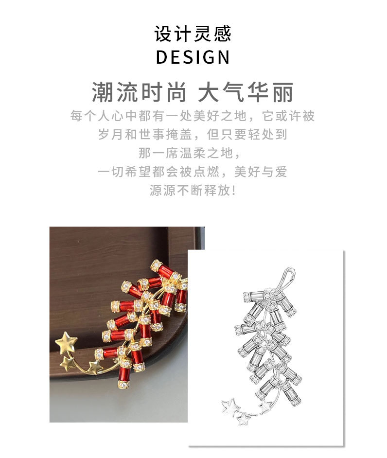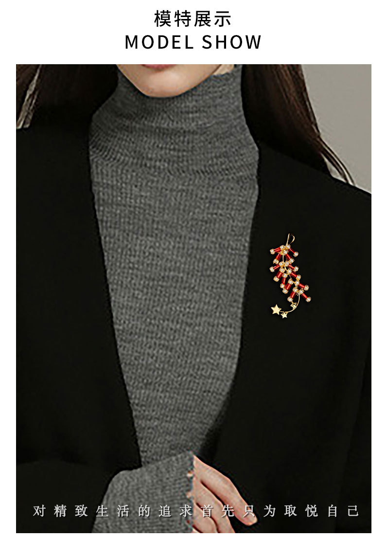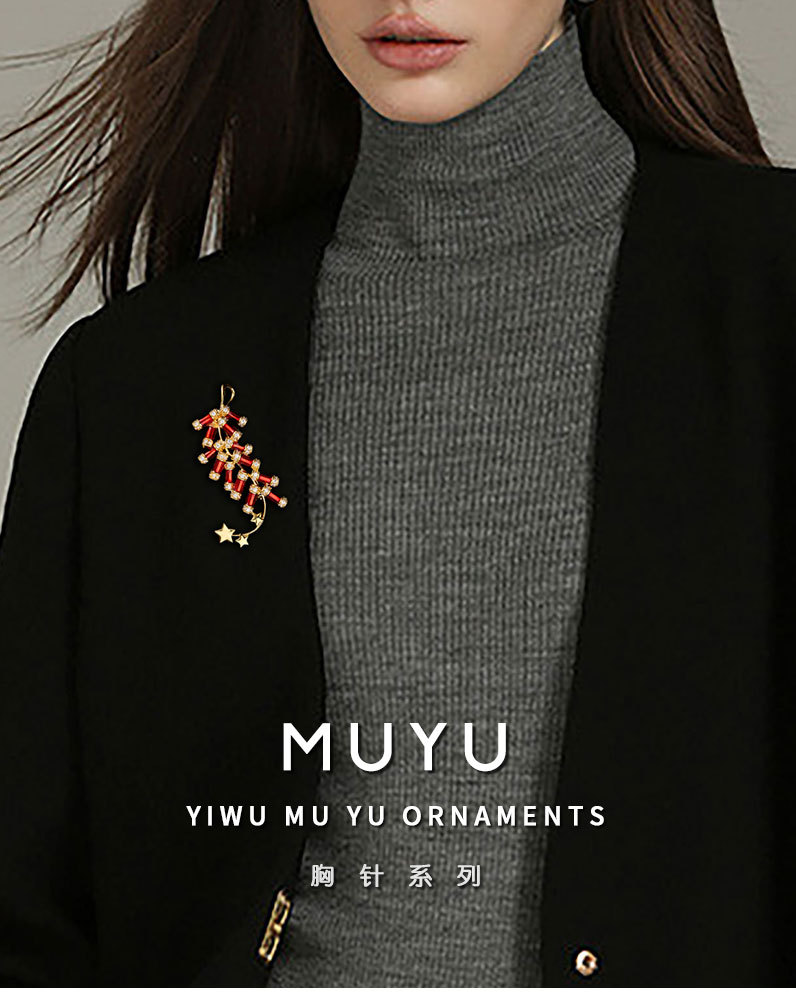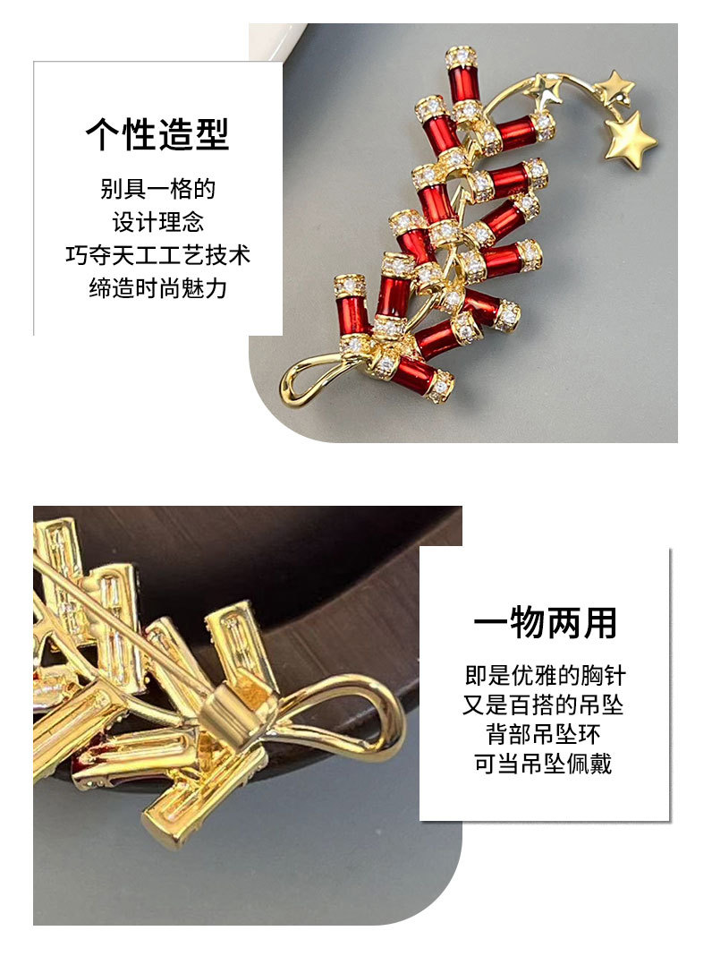 Chinese-style festive red firecracker brooch, New Year's creative pins, gifts, souvenirs, corsages and accessories