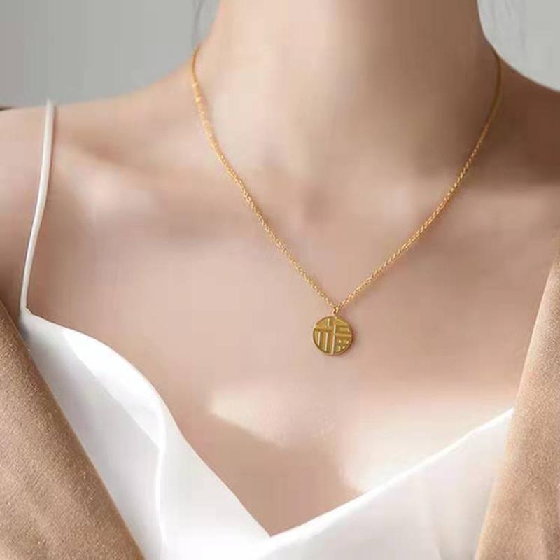 Chinese-style Fu brand titanium steel necklace, women's short sweater chain, retro-style round brand neck chain, cold style and niche accessories