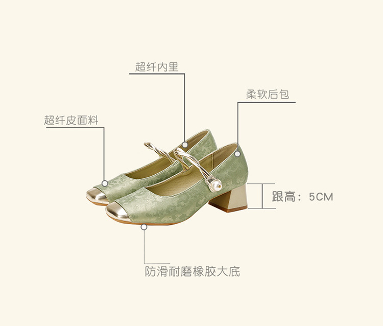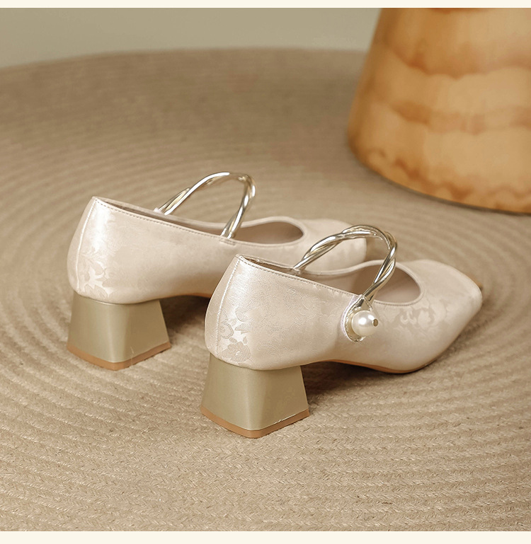 Chinese-style Mary Jane high heels women's single shoes with one-shoulder straps and thick heels 2025 patchwork Douyin hit single shoes for women