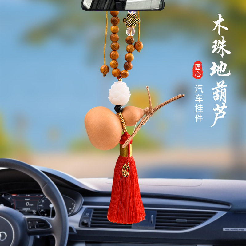 Chinese-style natural wood bead floor gourds, car hangers, tassels, interior pendants, rearview mirrors, jade lotus pendants