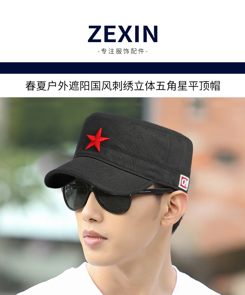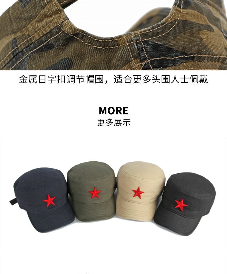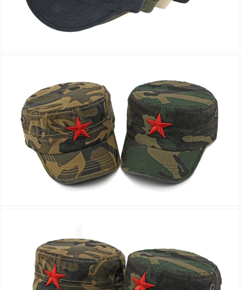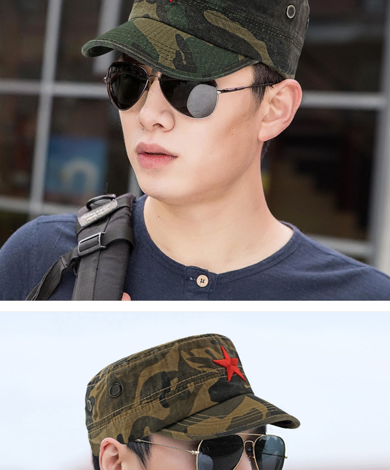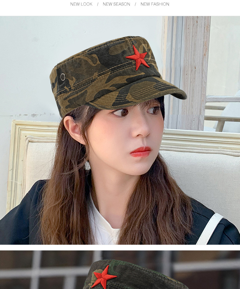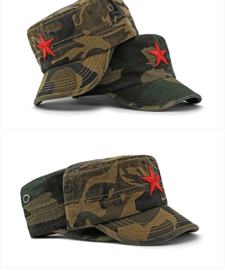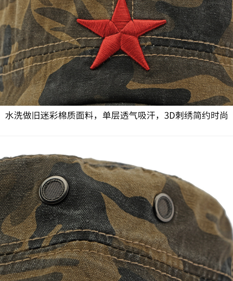 Chinese-style outdoor cotton camouflage sun-protective baseball cap, Chinese-style five-pointed star embroidered flat top hat, men's and women's sun hats