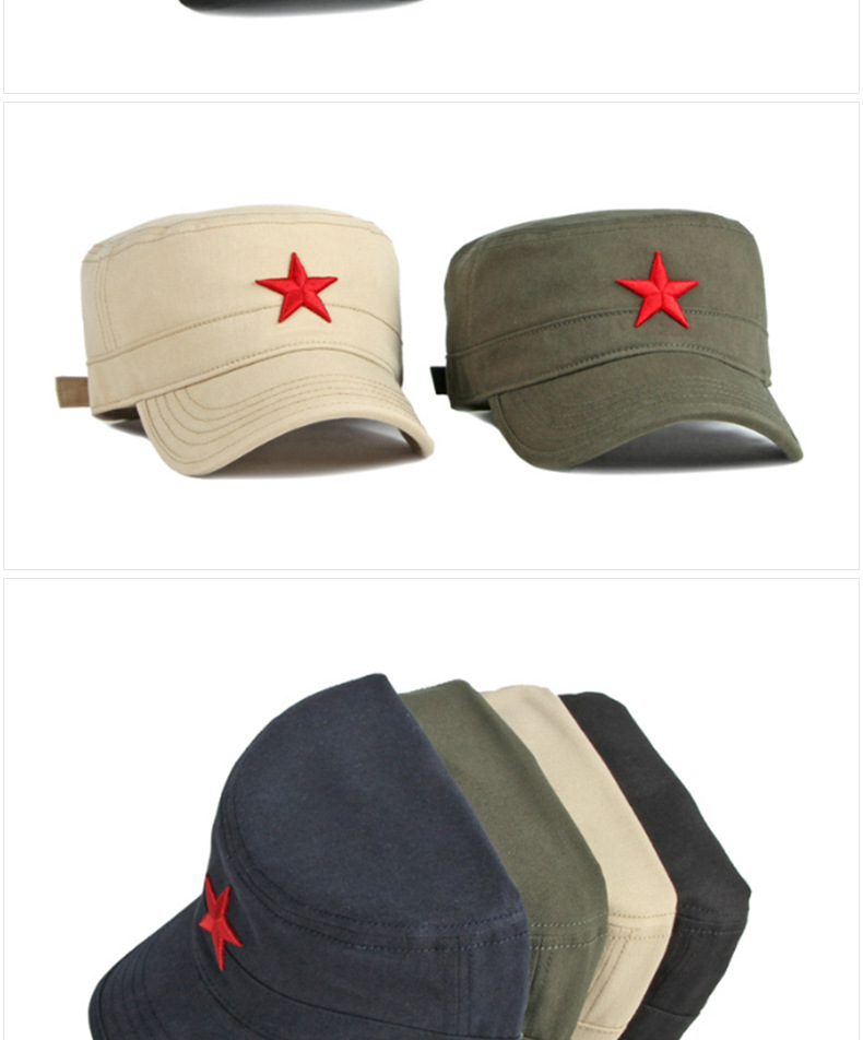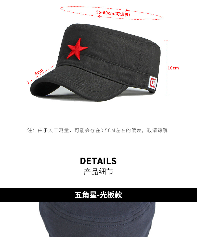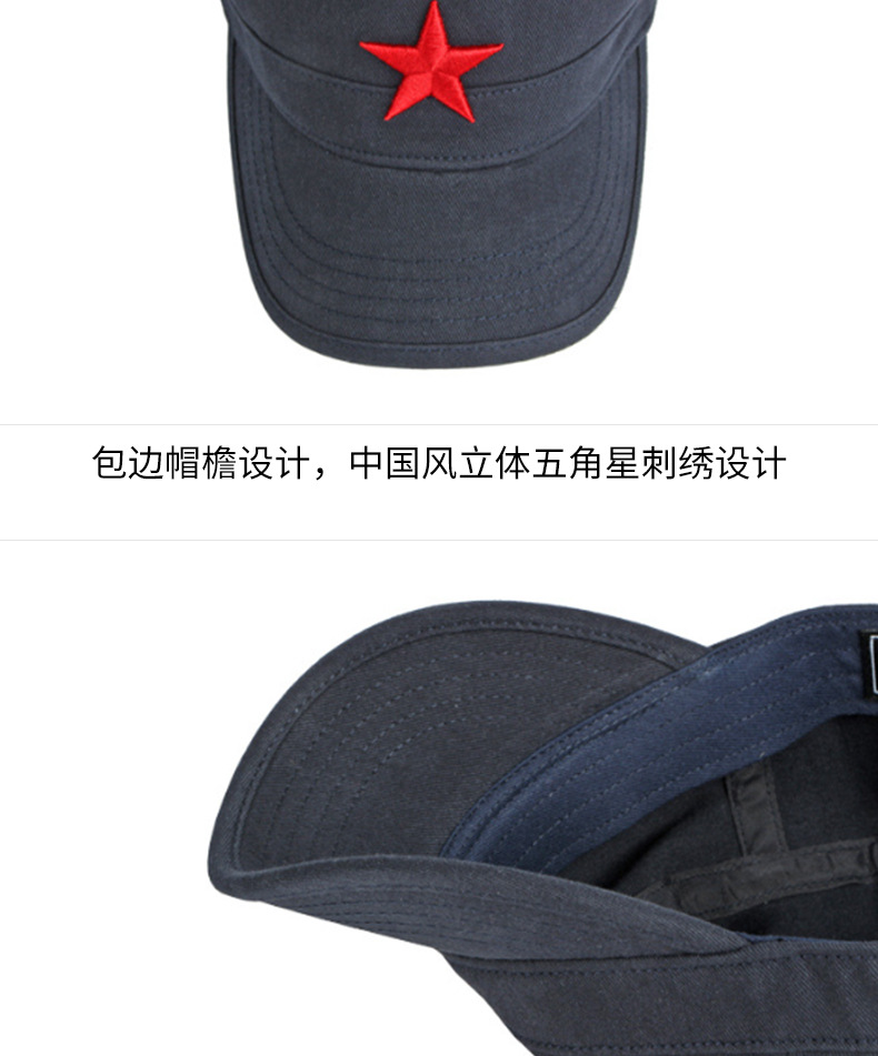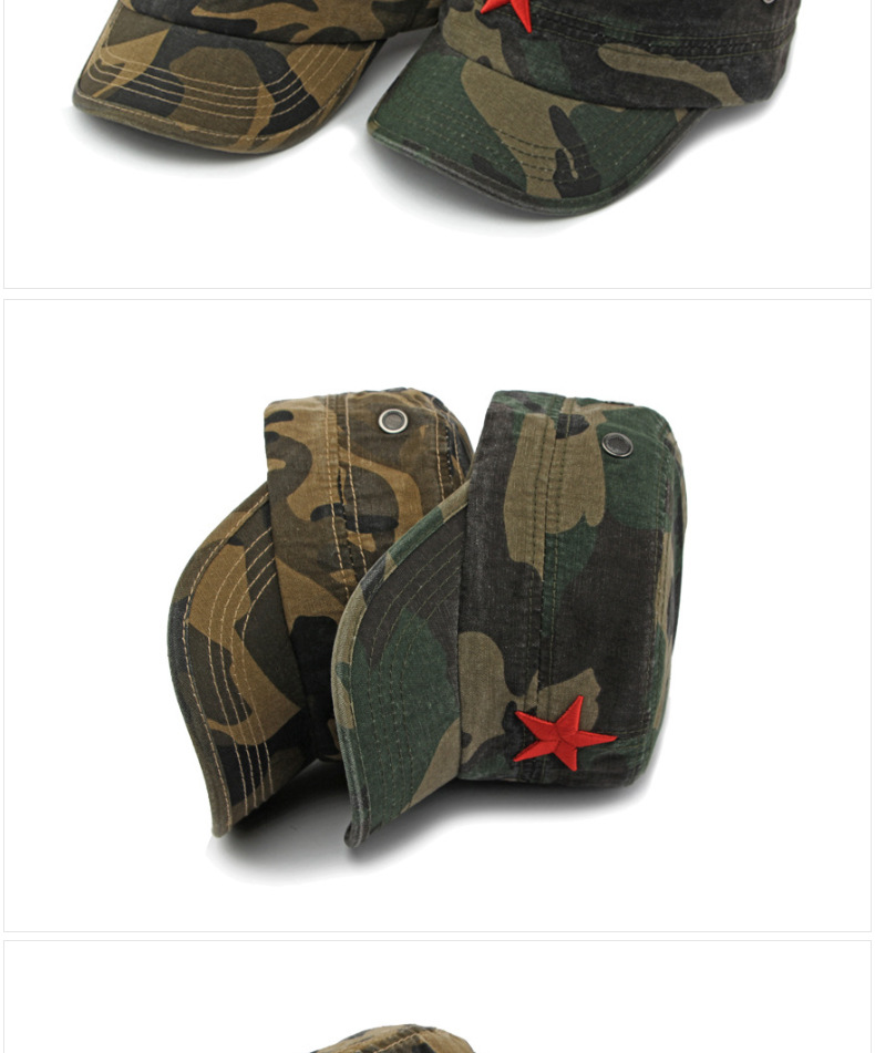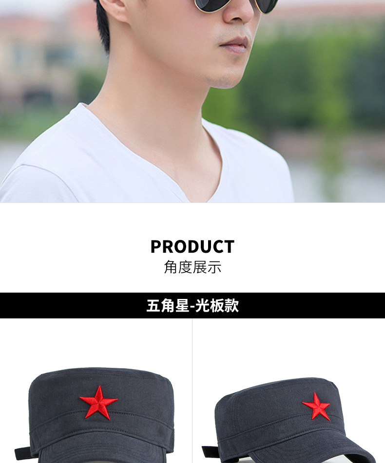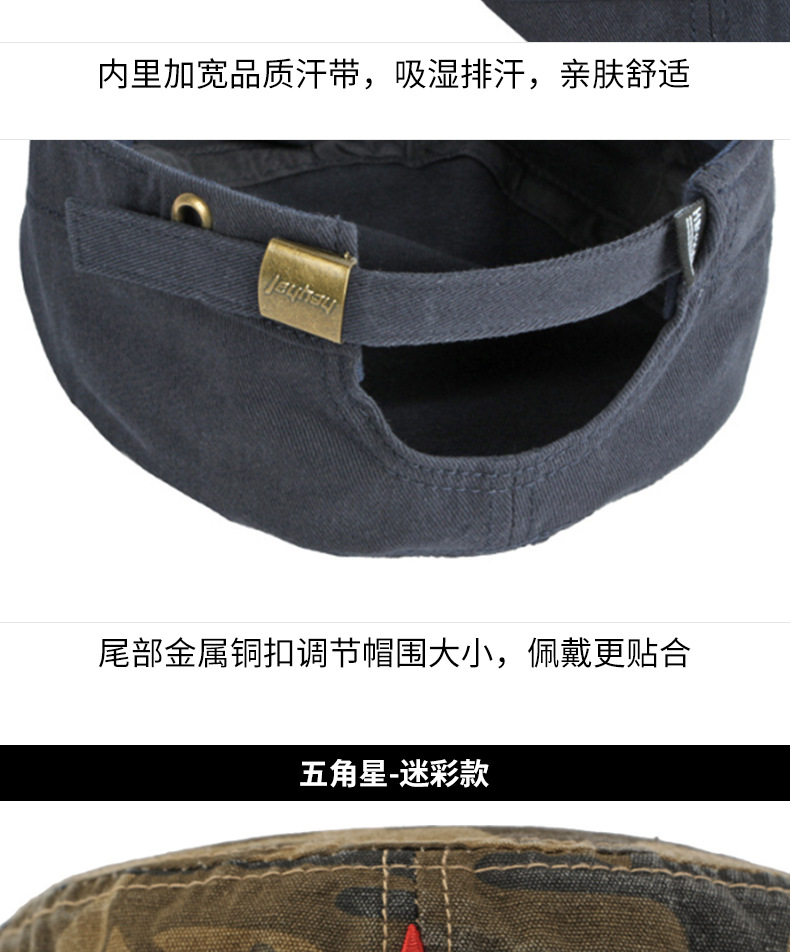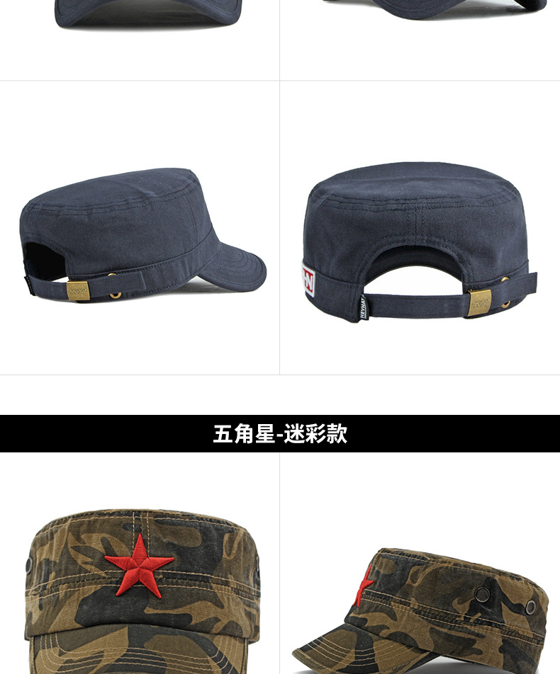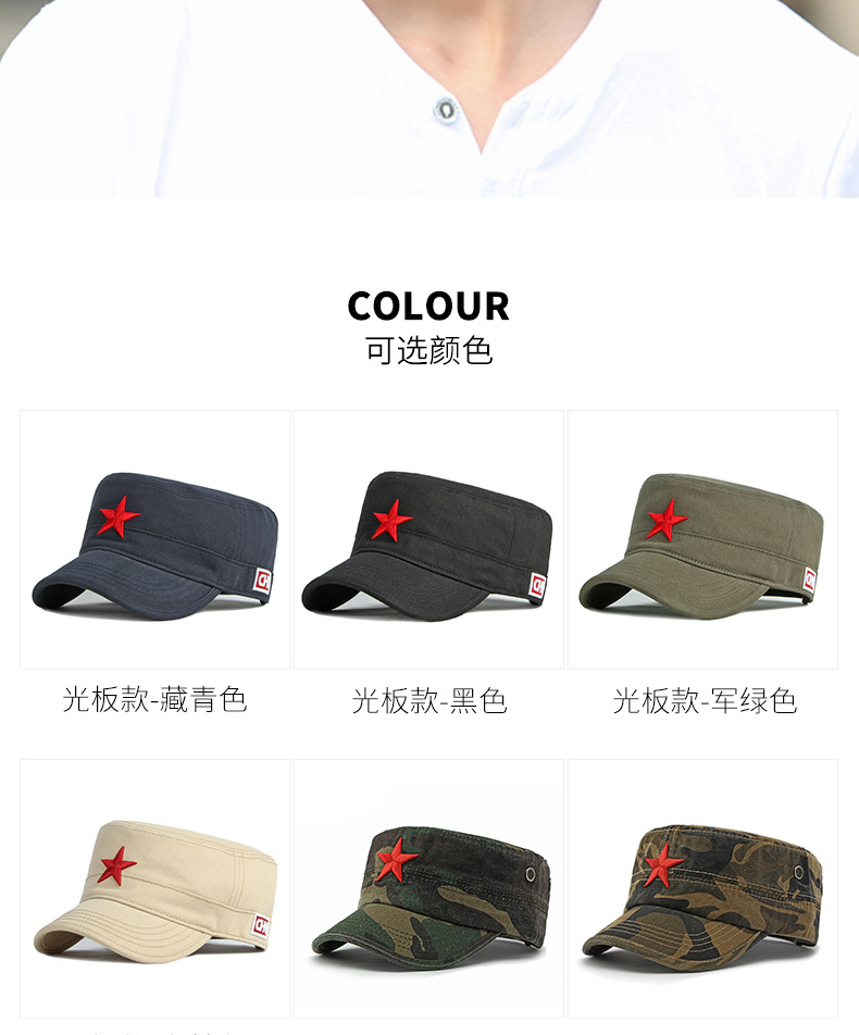 Chinese-style outdoor cotton camouflage sun-protective baseball cap, Chinese-style five-pointed star embroidered flat top hat, men's and women's sun hats
