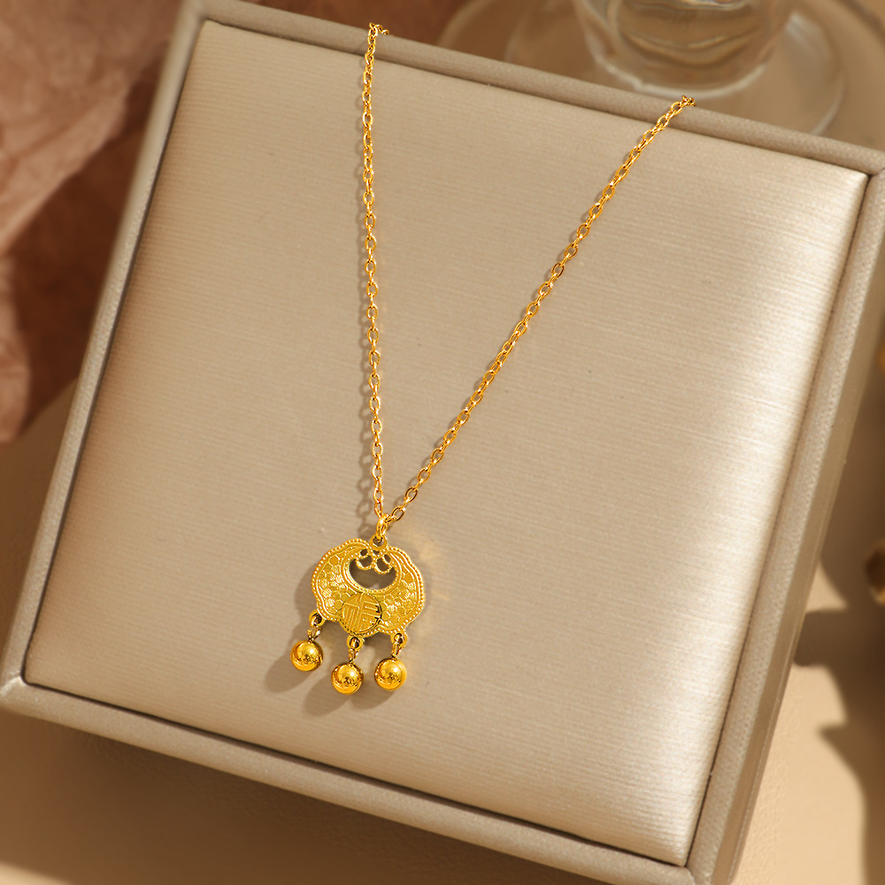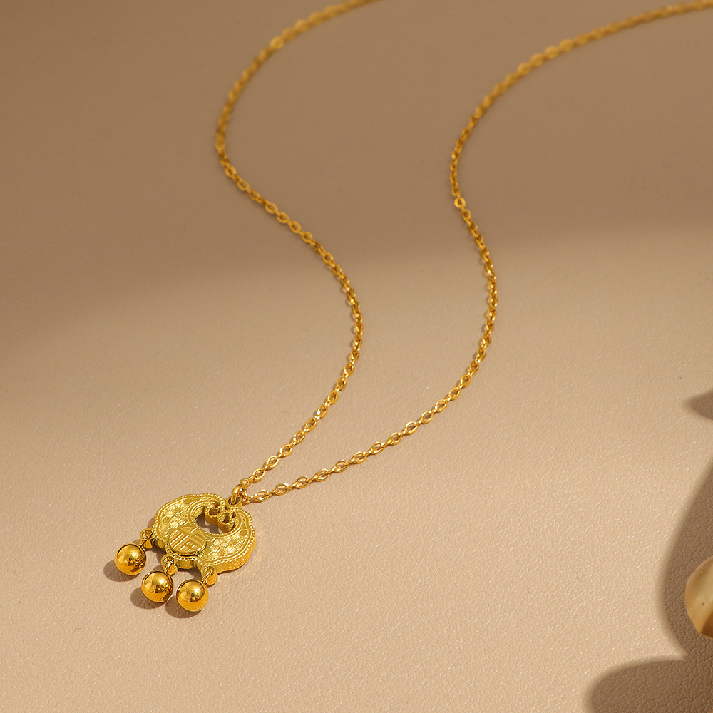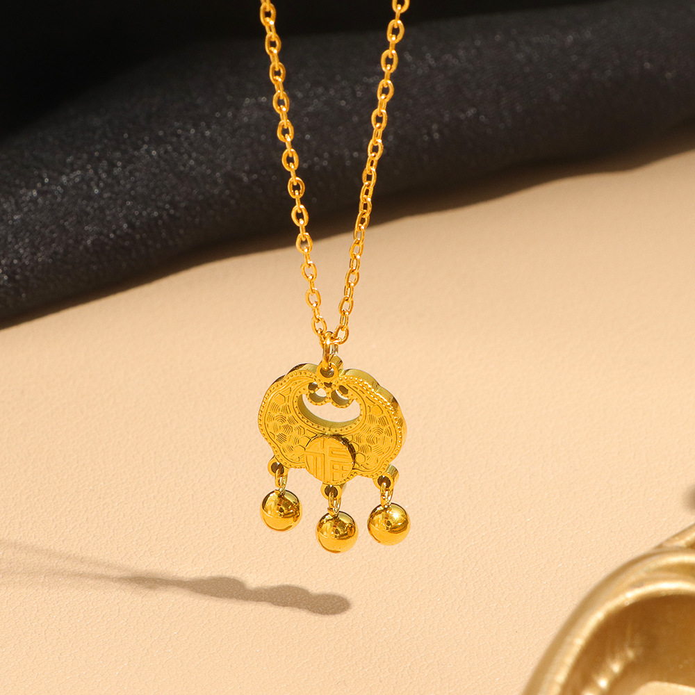 Chinese-style peace lock pendant for women, the same style of "Fu" character ruyi lock, longevity lock, titanium steel non-fading jewelry wholesale in the gold store