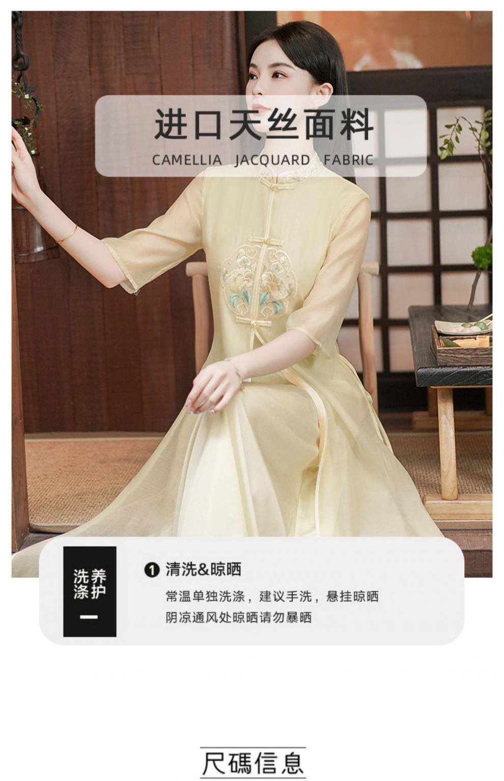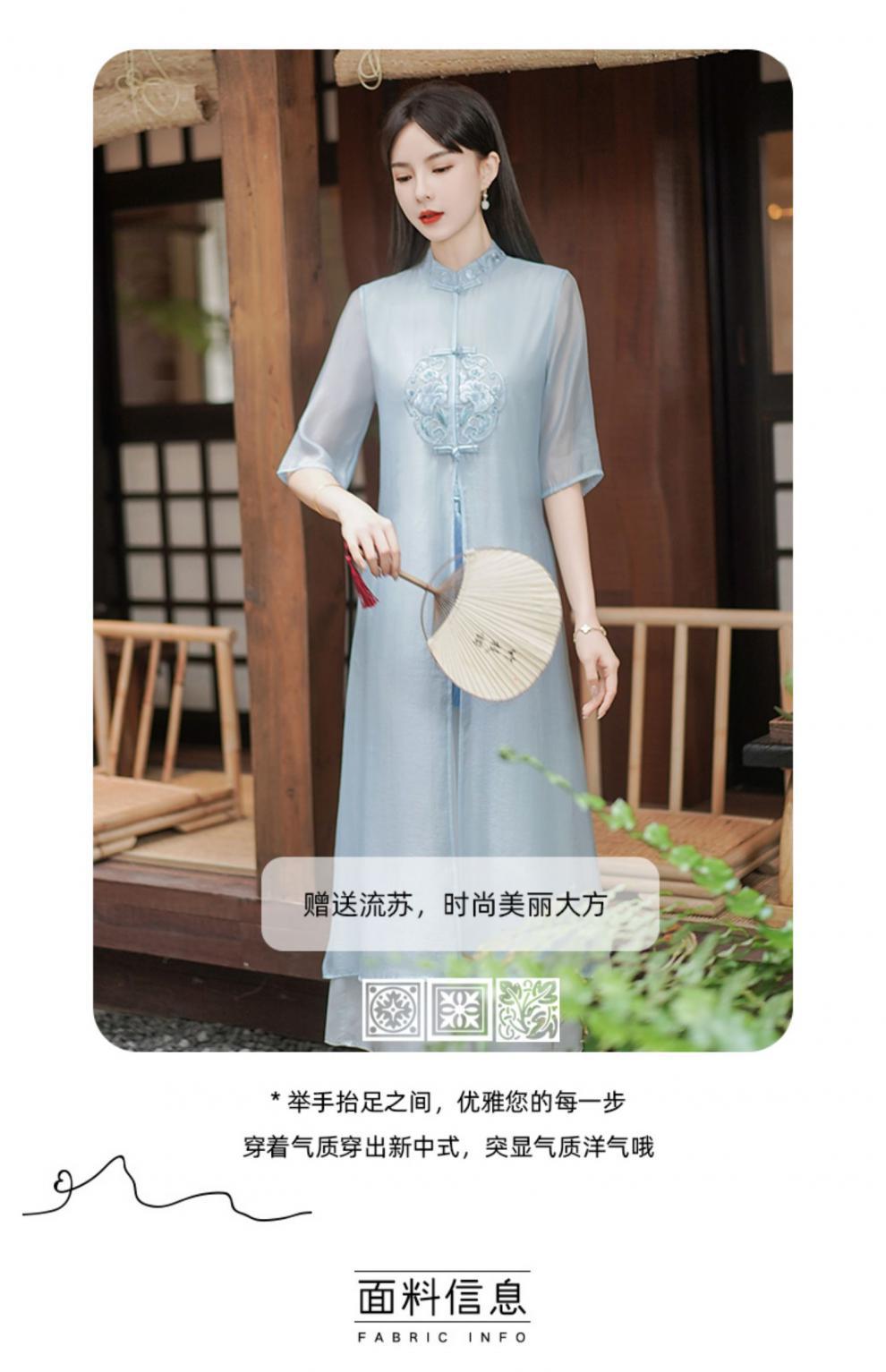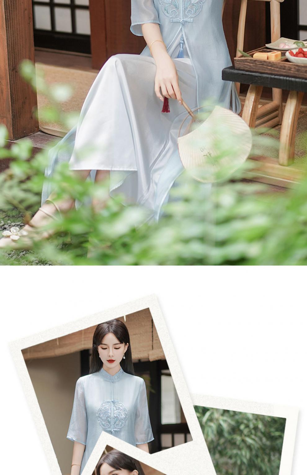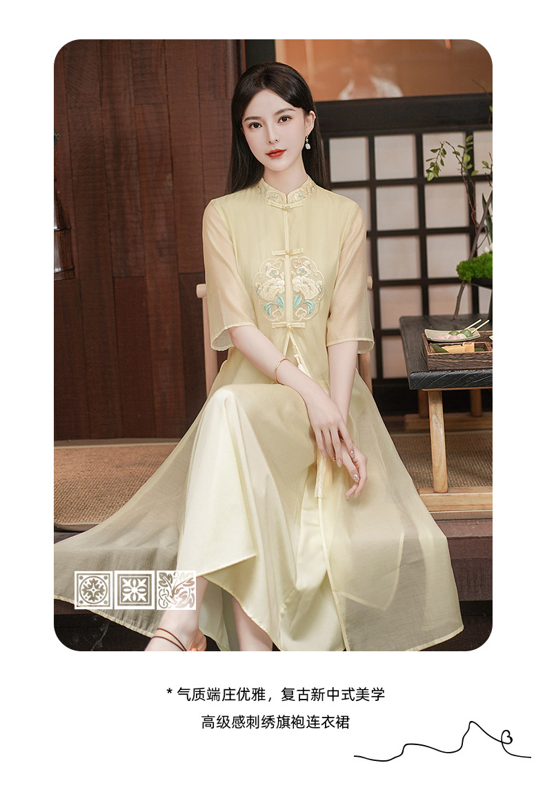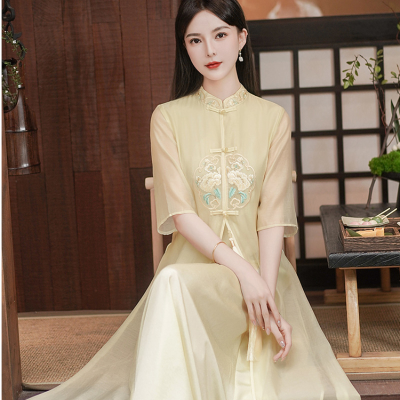 Chinese style Zen-inspired tea-wearing women's 2024 summer new embroidered new Chinese-style ethereal and flowing cheongsam improved dress
