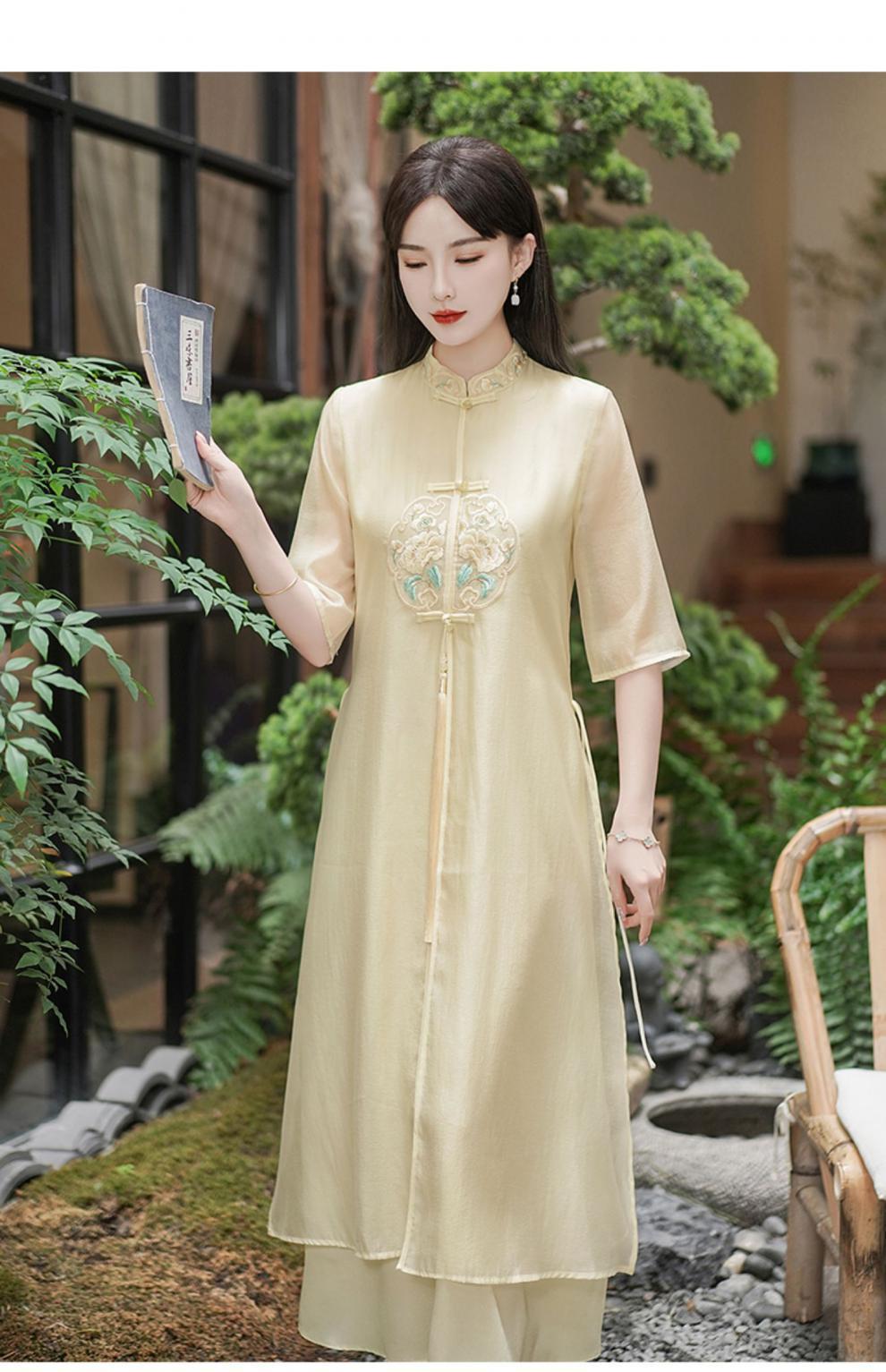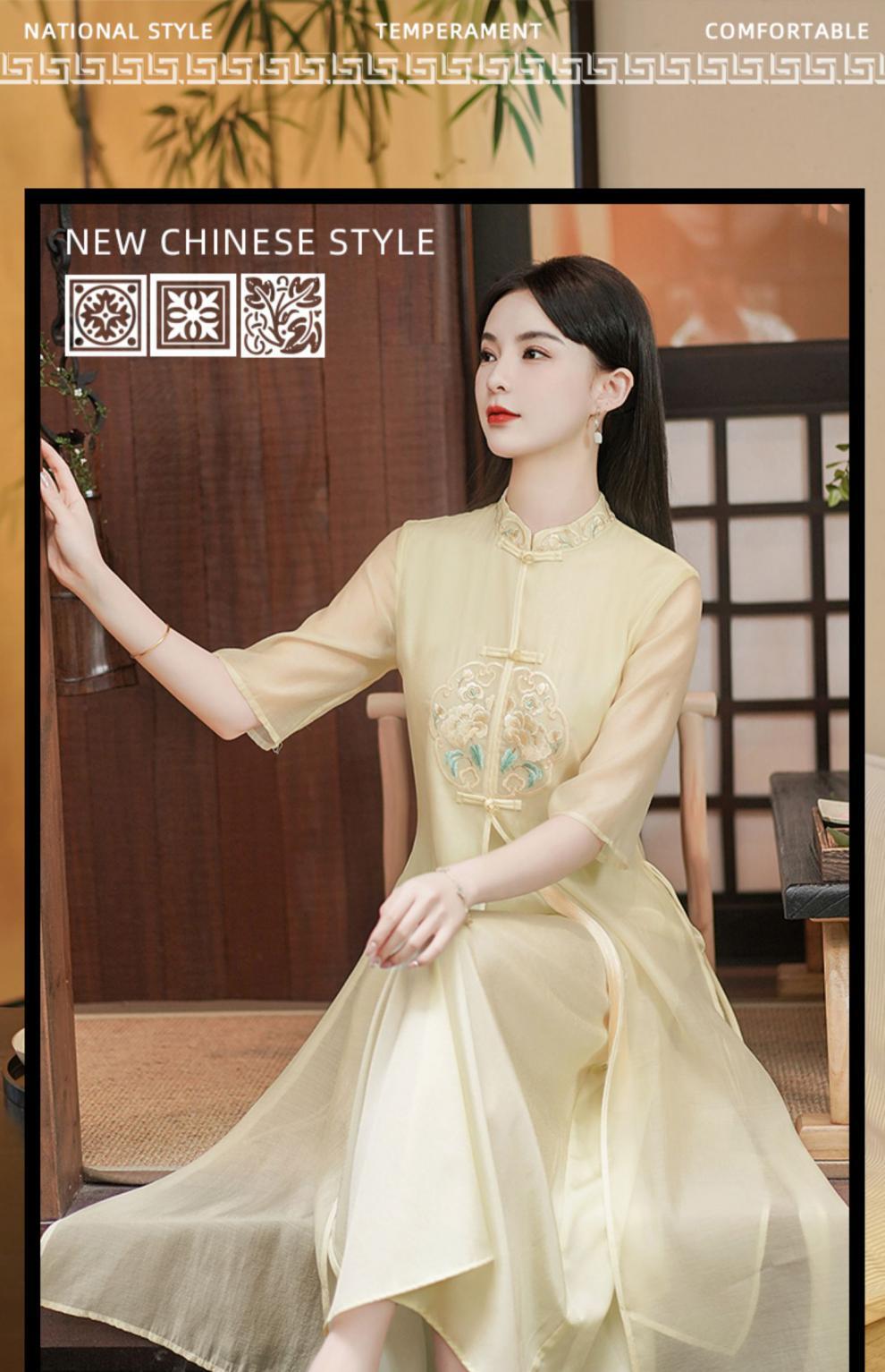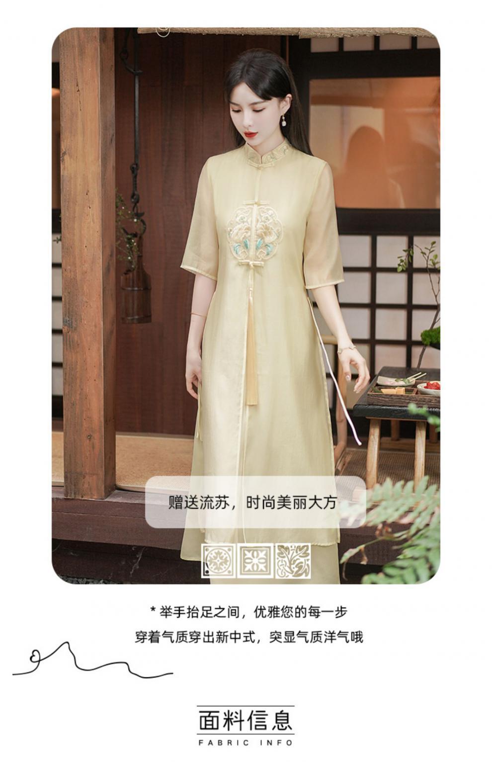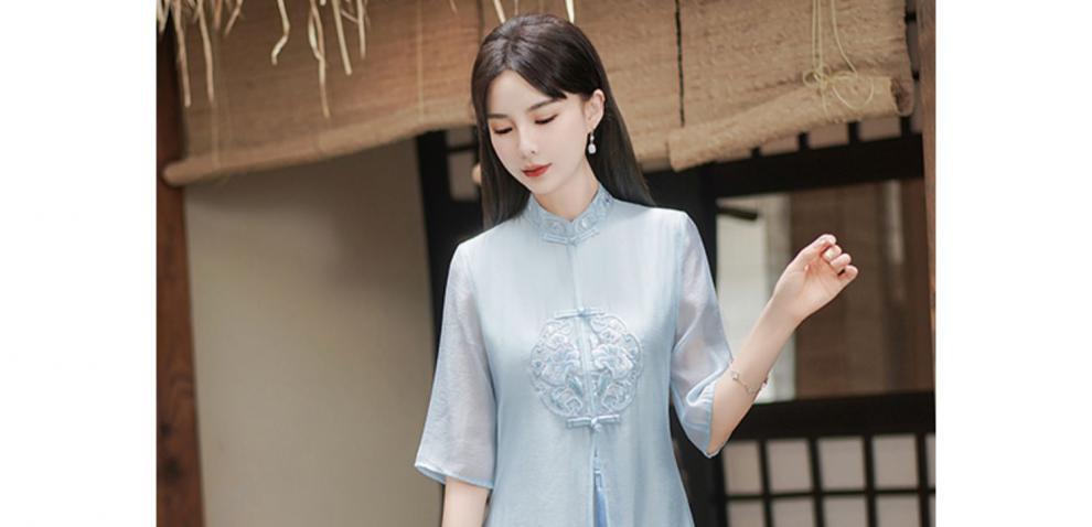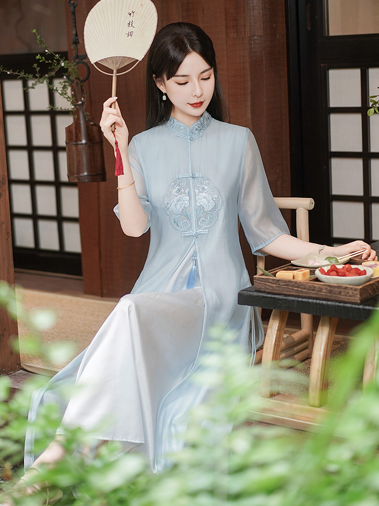 Chinese style Zen-inspired tea-wearing women's 2024 summer new embroidered new Chinese-style ethereal and flowing cheongsam improved dress