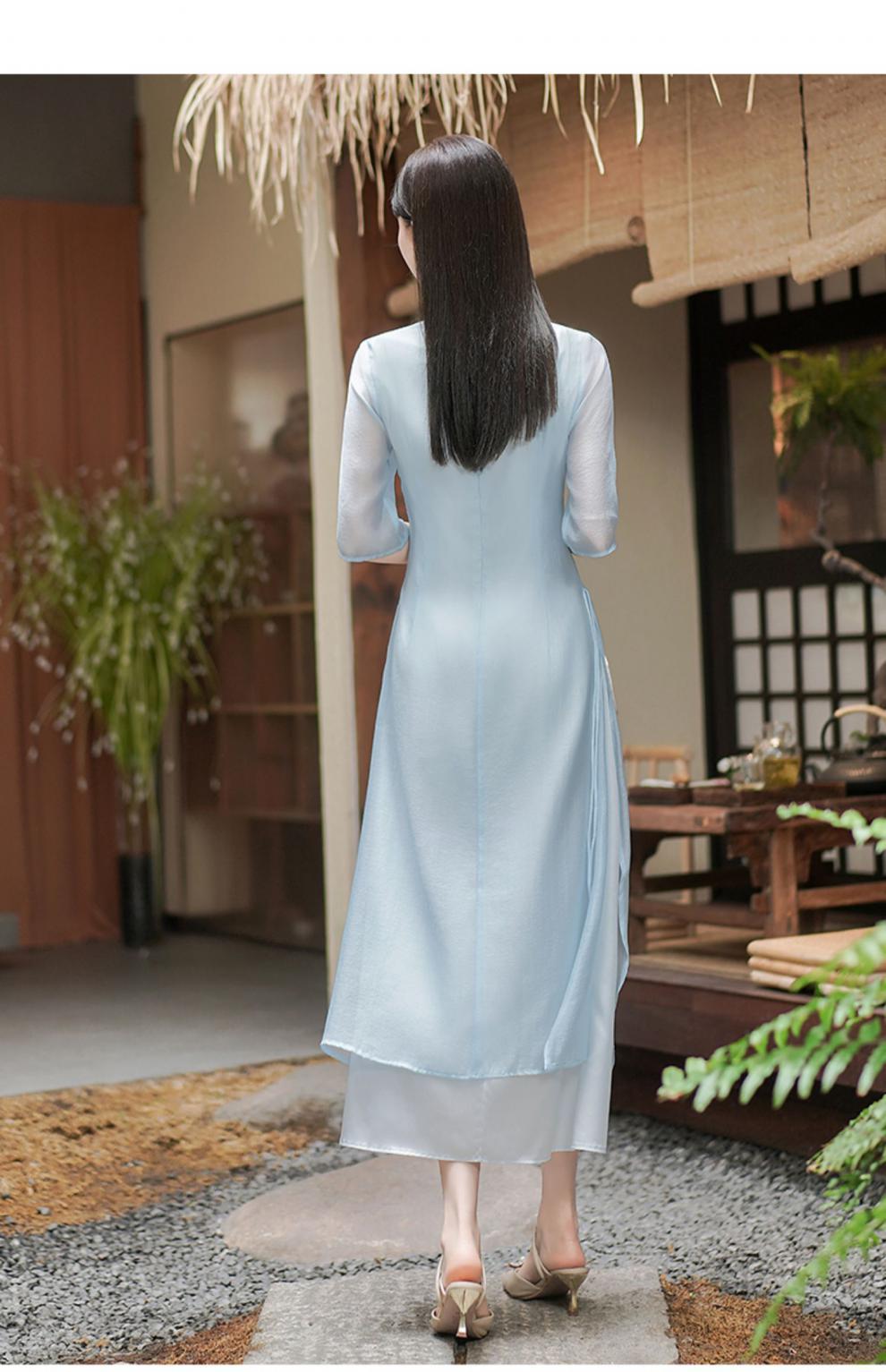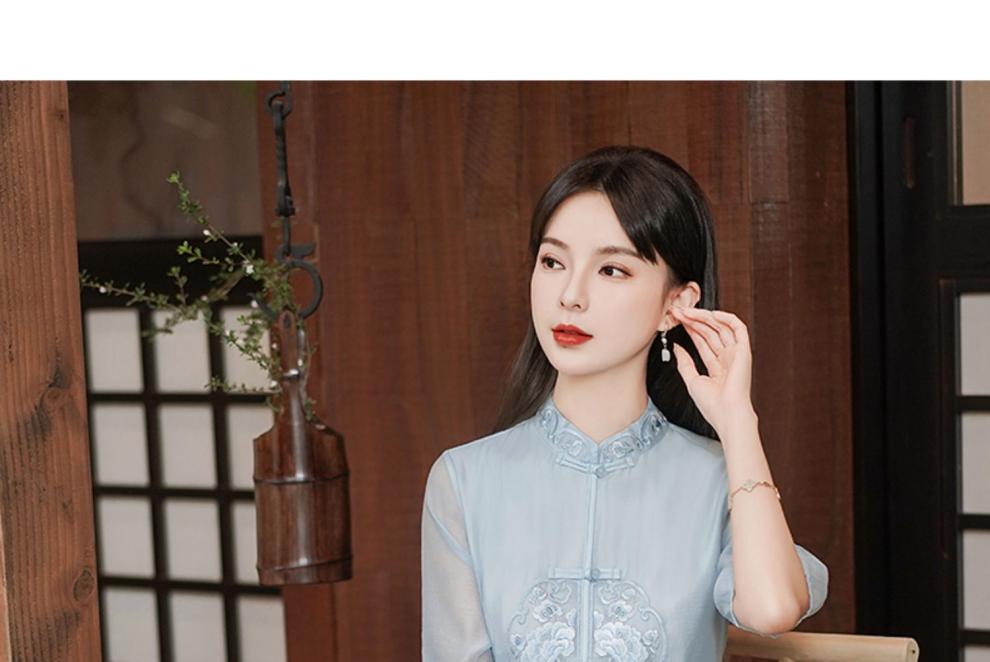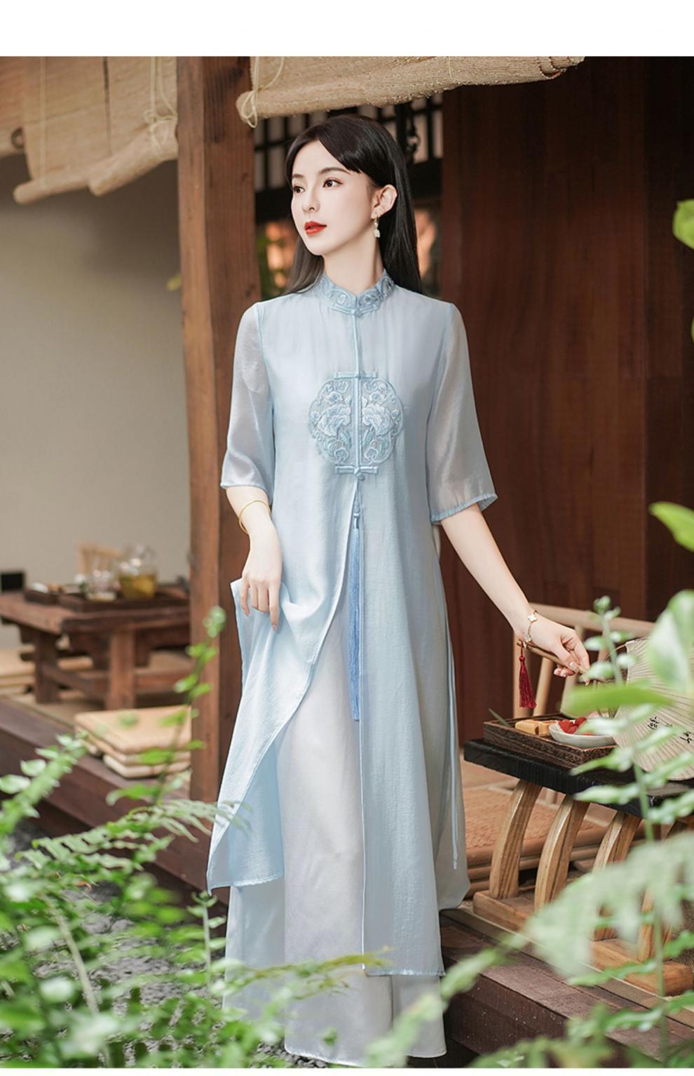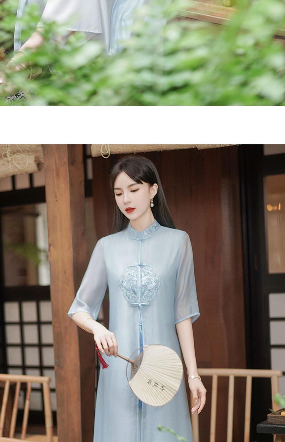 Chinese style Zen-inspired tea-wearing women's 2024 summer new embroidered new Chinese-style ethereal and flowing cheongsam improved dress
