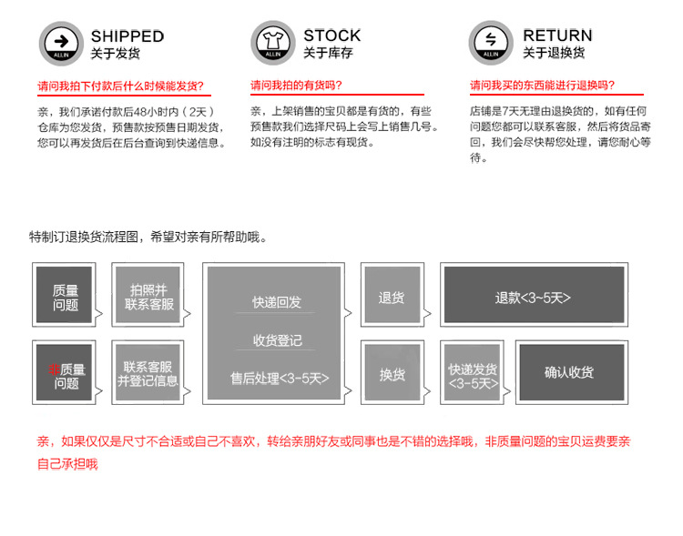 3. In case of any product quality issues, please take photos in time and contact customer service. We will handle it for you as soon as possible. The shipping cost for returns and exchanges caused by product quality issues will be borne by us. The shipping cost for returns and exchanges caused by non-quality issues will be borne by the buyer themselves. Please pay attention!