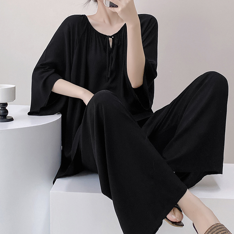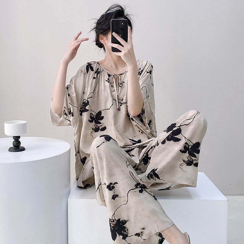 Chinese trend short-sleeved cotton and silk pajamas for women, spring and summer large-sized home wear set, Chinese style, can be worn outside in large sizes