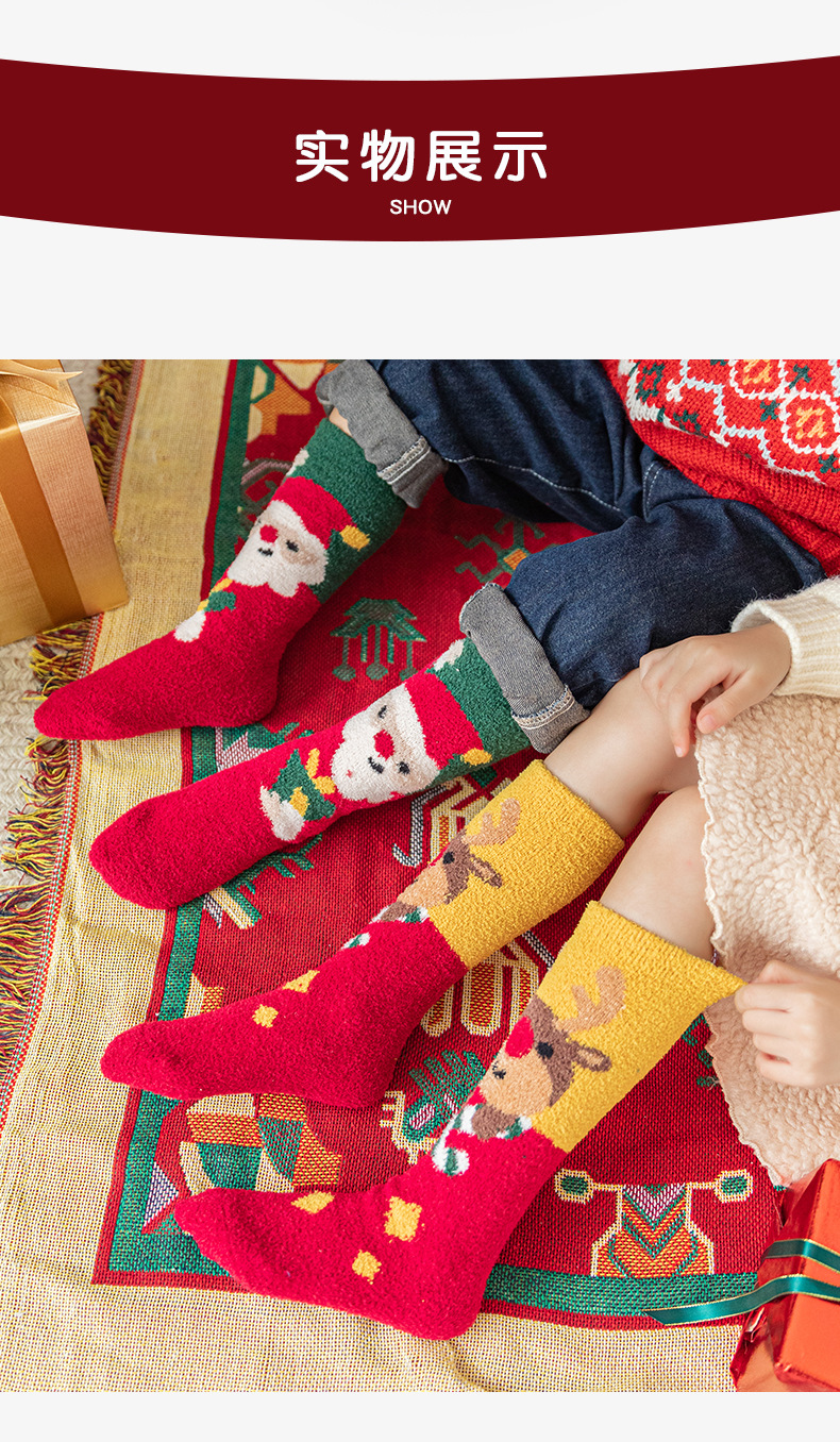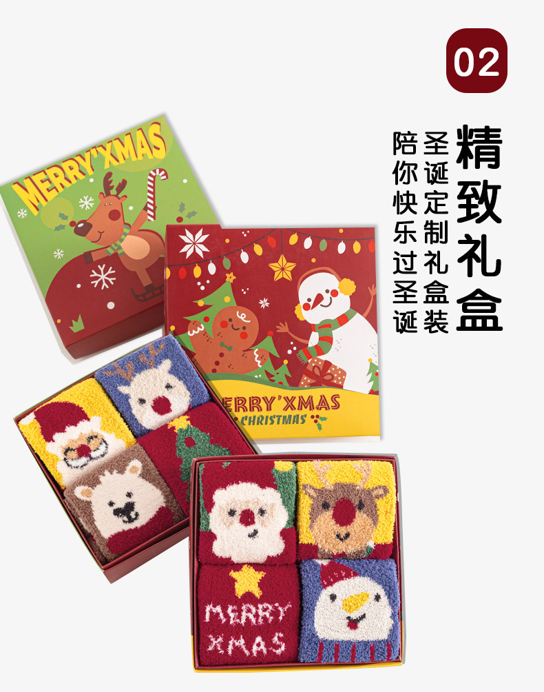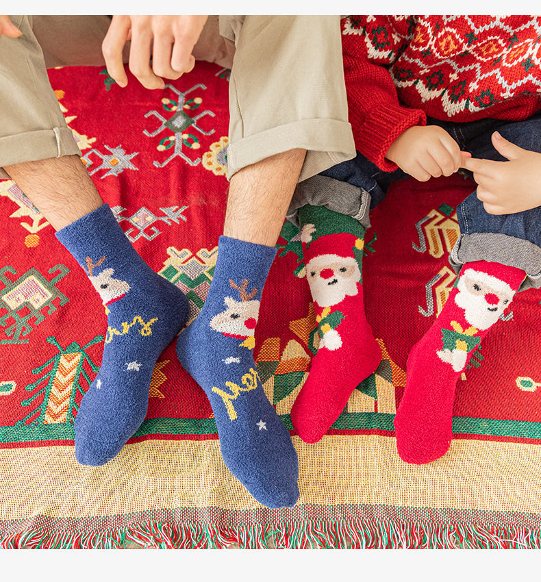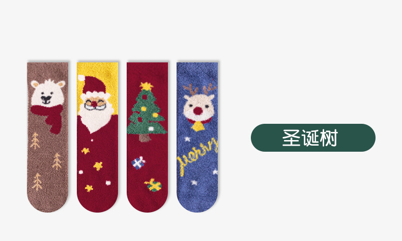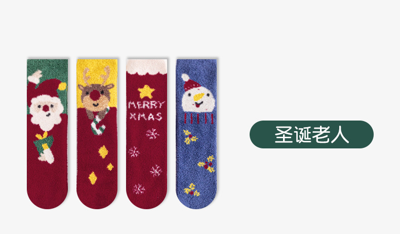 Christmas socks 4-pair gift box, coral fleece parent-child socks, thickened children's long stockings for autumn and winter, cartoon baby socks, super cute