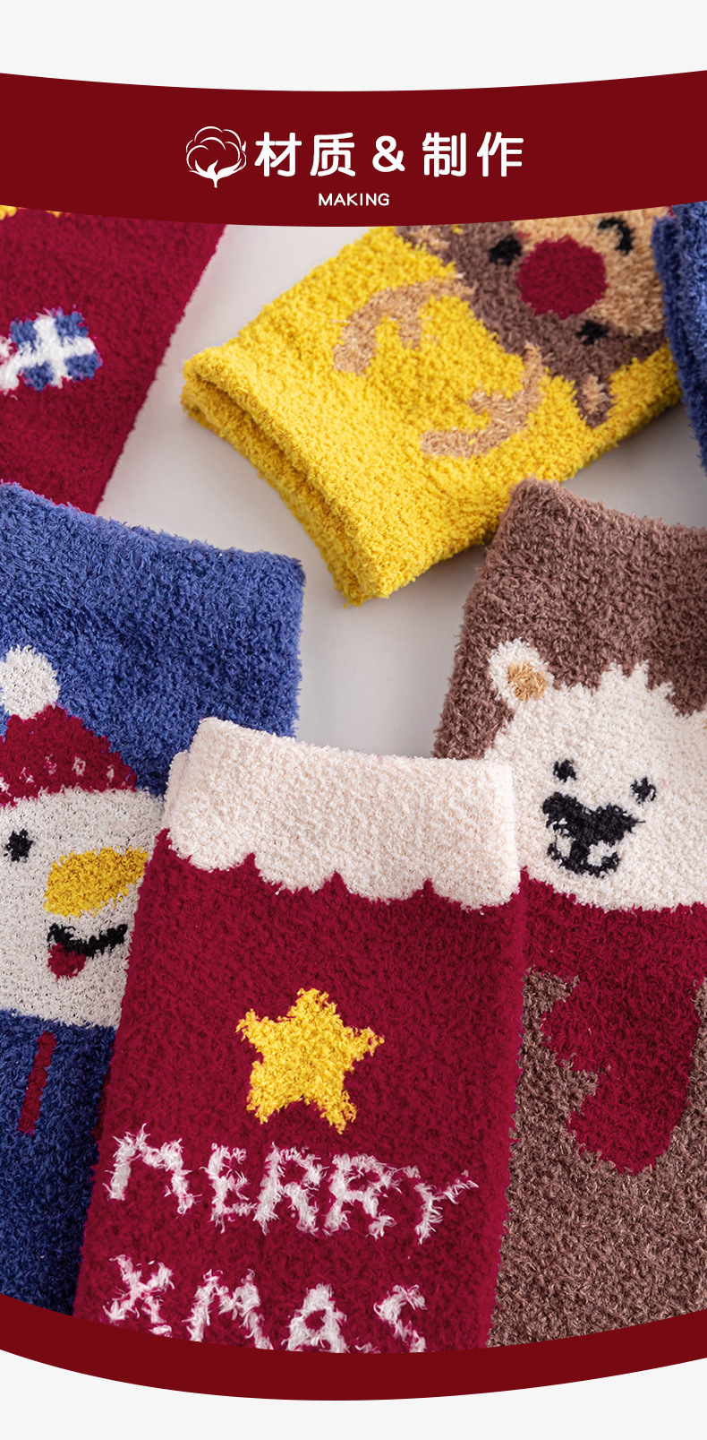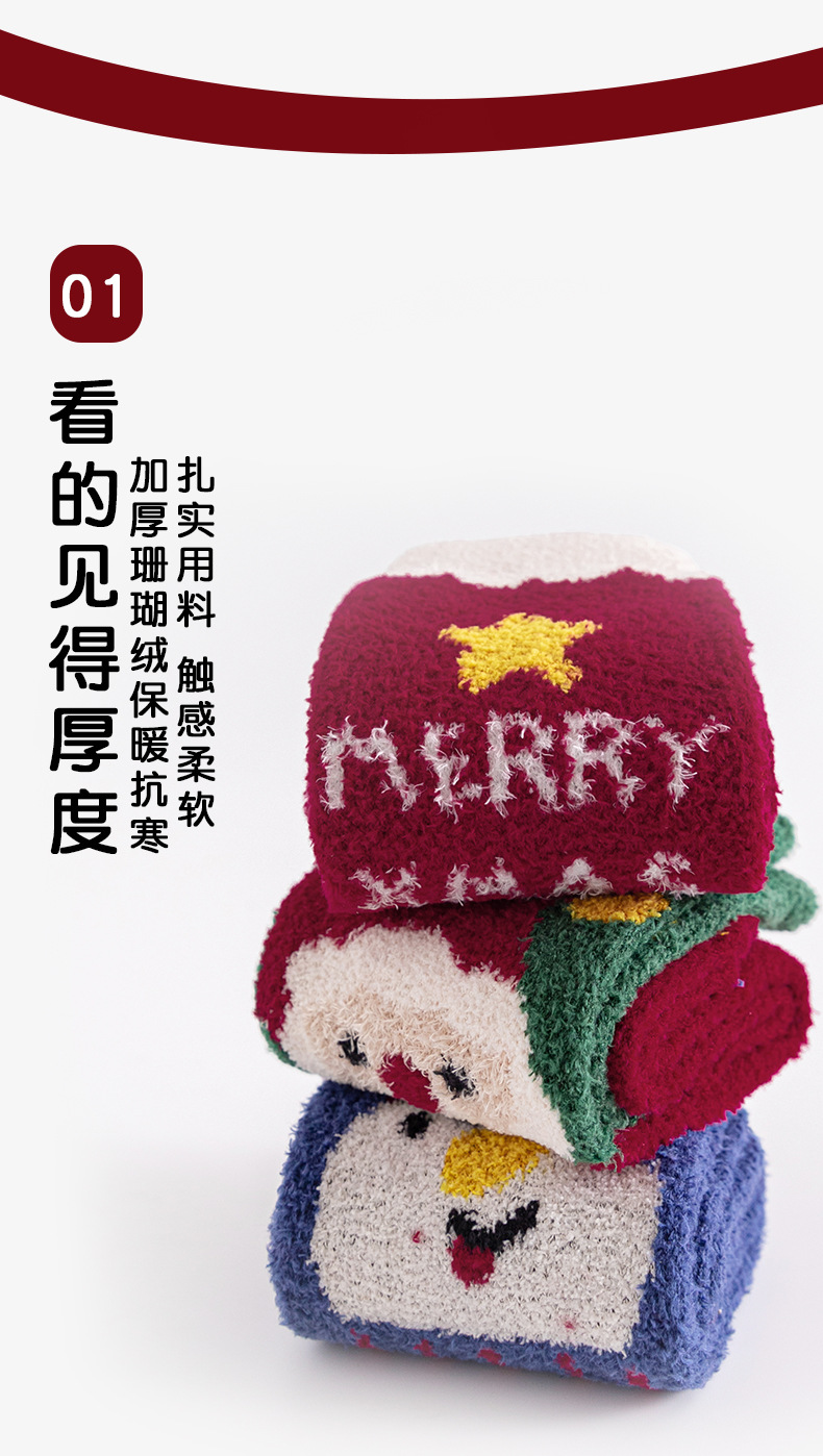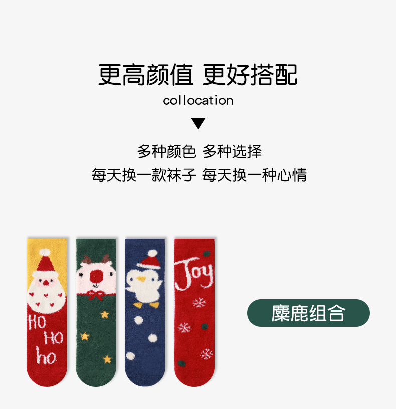 Christmas socks 4-pair gift box, coral fleece parent-child socks, thickened children's long stockings for autumn and winter, cartoon baby socks, super cute