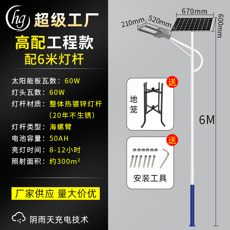 【 Complete Set 】 6-meter conch arm integral hot-dip galvanized lamp post + Chuangfu solar street lamp